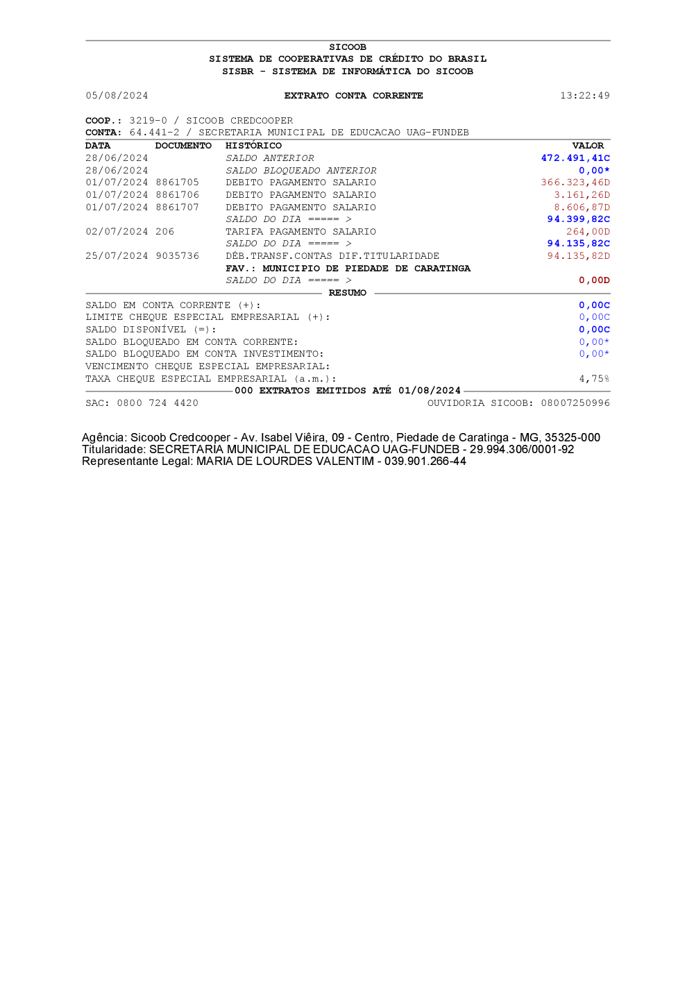 CONTA: 64.441-2 / SECRETARIA MUNICIPAL DE EDUCACAO UAG-FUNDEB