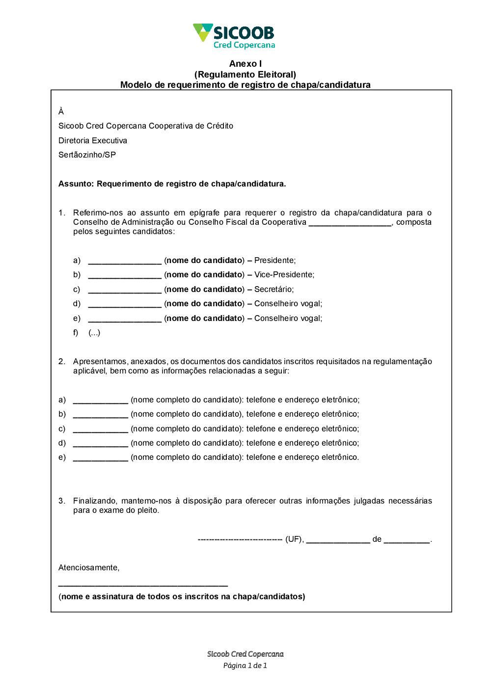 ANEXO I - REQUERIMENTO DE REGISTRO DE CHAPA/CANDIDATURA