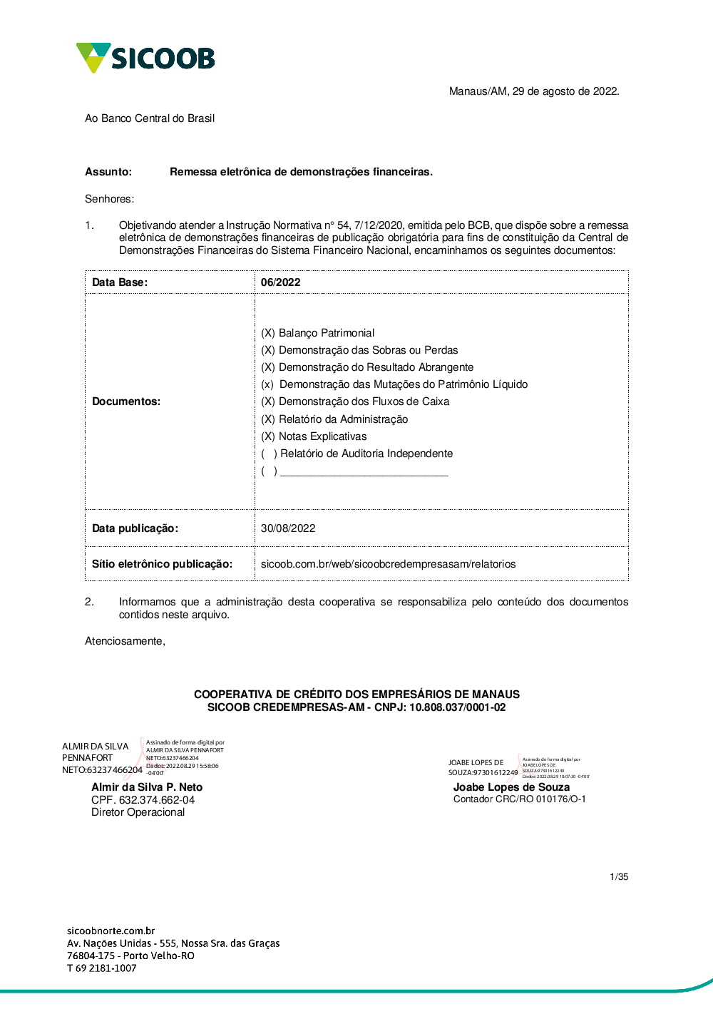Desmonstrações contábeis 06/2022