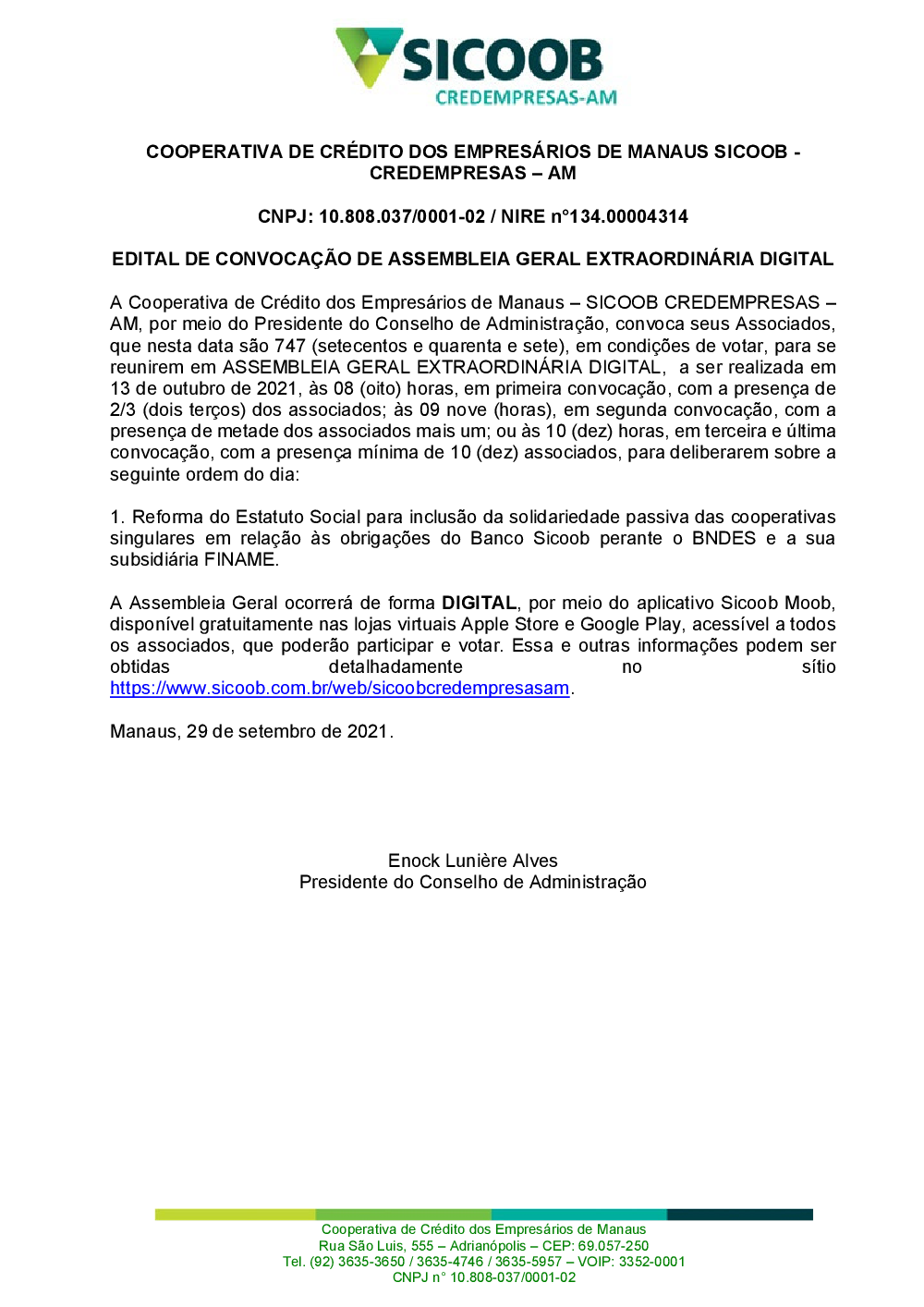 EDITAL DE CONVOCAÇÃO - AGE 2021