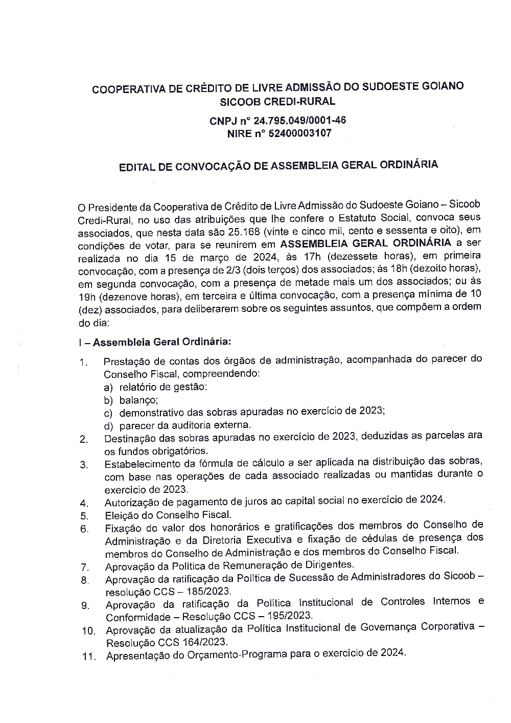 EDITAL DE CONVOCAÇÃO DE ASSEMBLEIA GERAL ORDINÁRIA