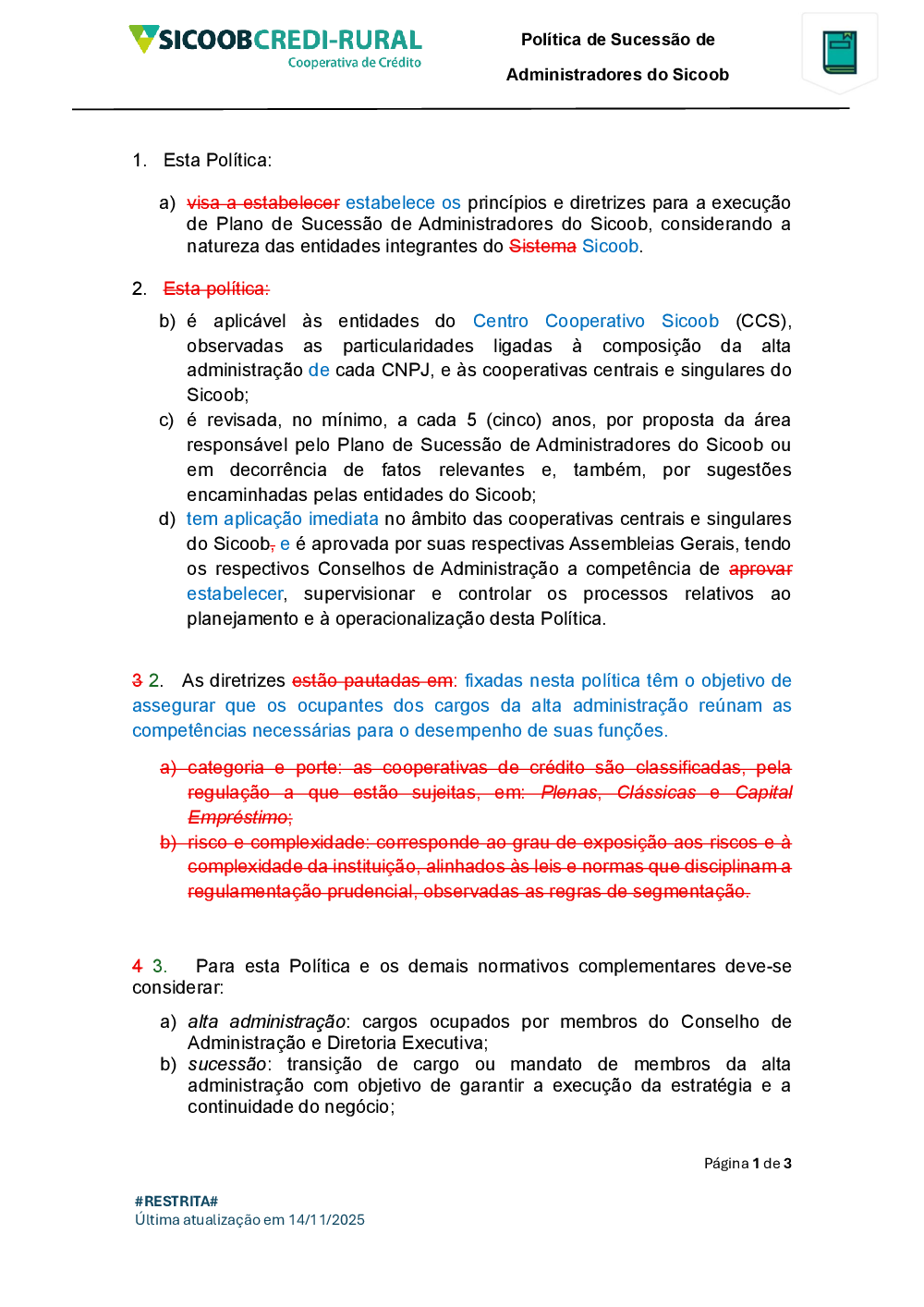 Política de Sucessão VIGENTE2024 x PROPOSTA2025