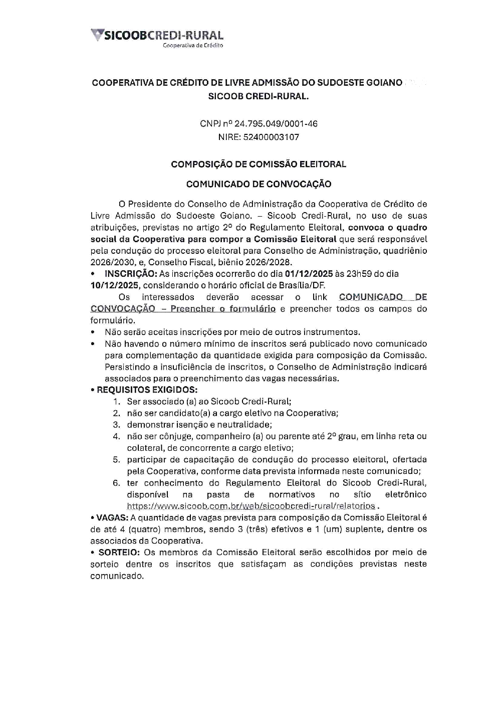 Comunicado da Composição Eleitoral