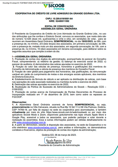 Seja bem-vindo à página da Assembleia Geral Ordinária e Extraordinária do Sicoob Crediadag, especialmente desenvolvida para lhe dar todas as informações necessárias de como participar, garantindo seu direito de saber tudo sobre sua cooperativa e de dar o seu voto.
