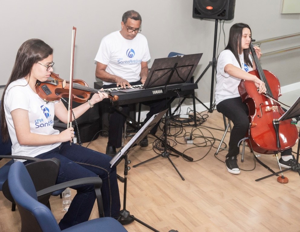 Em seguida, os presentes foram convidados a se dirigirem para o auditório externo, dando continuidade à cerimônia. Os participantes foram recepcionados com uma apresentação da Lira Santo Antonio e um delicioso Café Campos Altos. Na sequência, a mesa de autoridades foi composta pelos Srs. Eli Costa Dias (presidente do conselho de administração), Paulo Cesar de Almeida (prefeito de Campos Altos), José Humberto Ribeiro (prefeito de Santa Rosa da Serra), Adamilson Isaias da Costa (representante da câmara de vereadores), Elson da Rocha Justino (representante da Central Crediminas) e Willian Rodrigues de Brito (representante Sebrae).