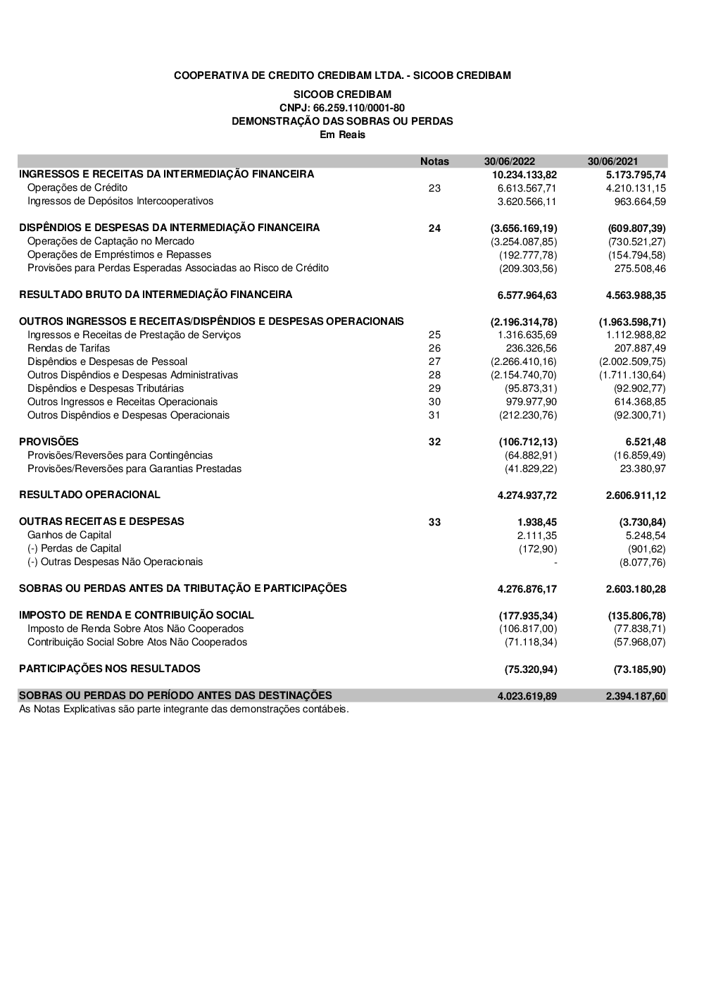 Demonstrações Contábeis - Sicoob Credibam
