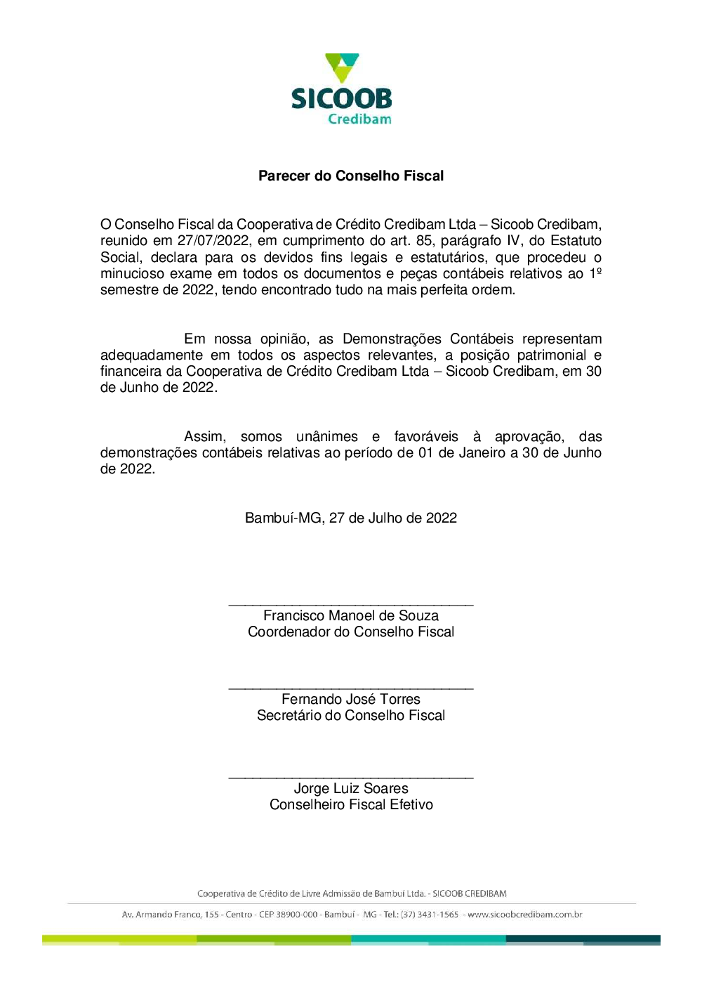 Parecer Conselho Fiscal