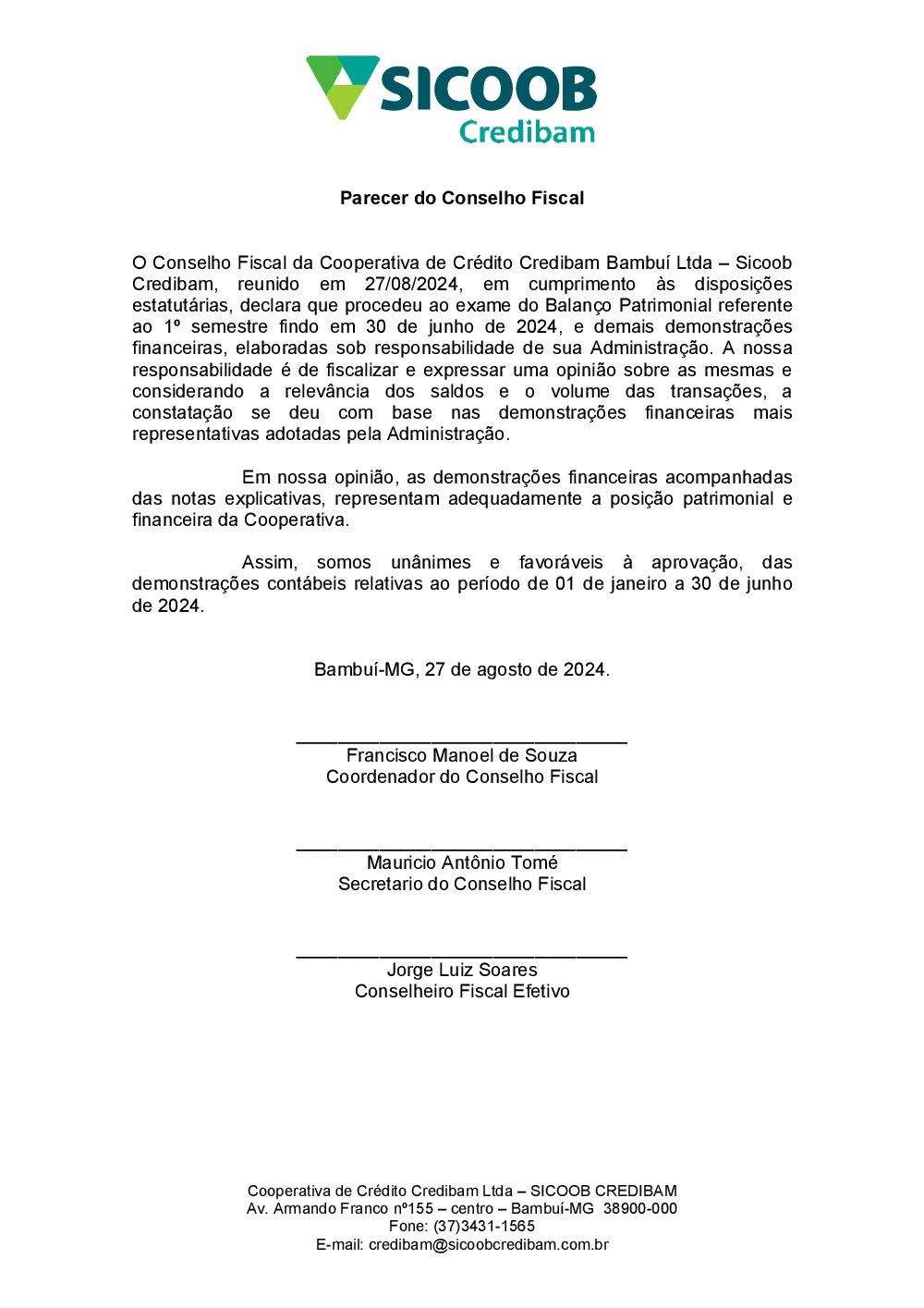 Parecer do Conselho Fiscal