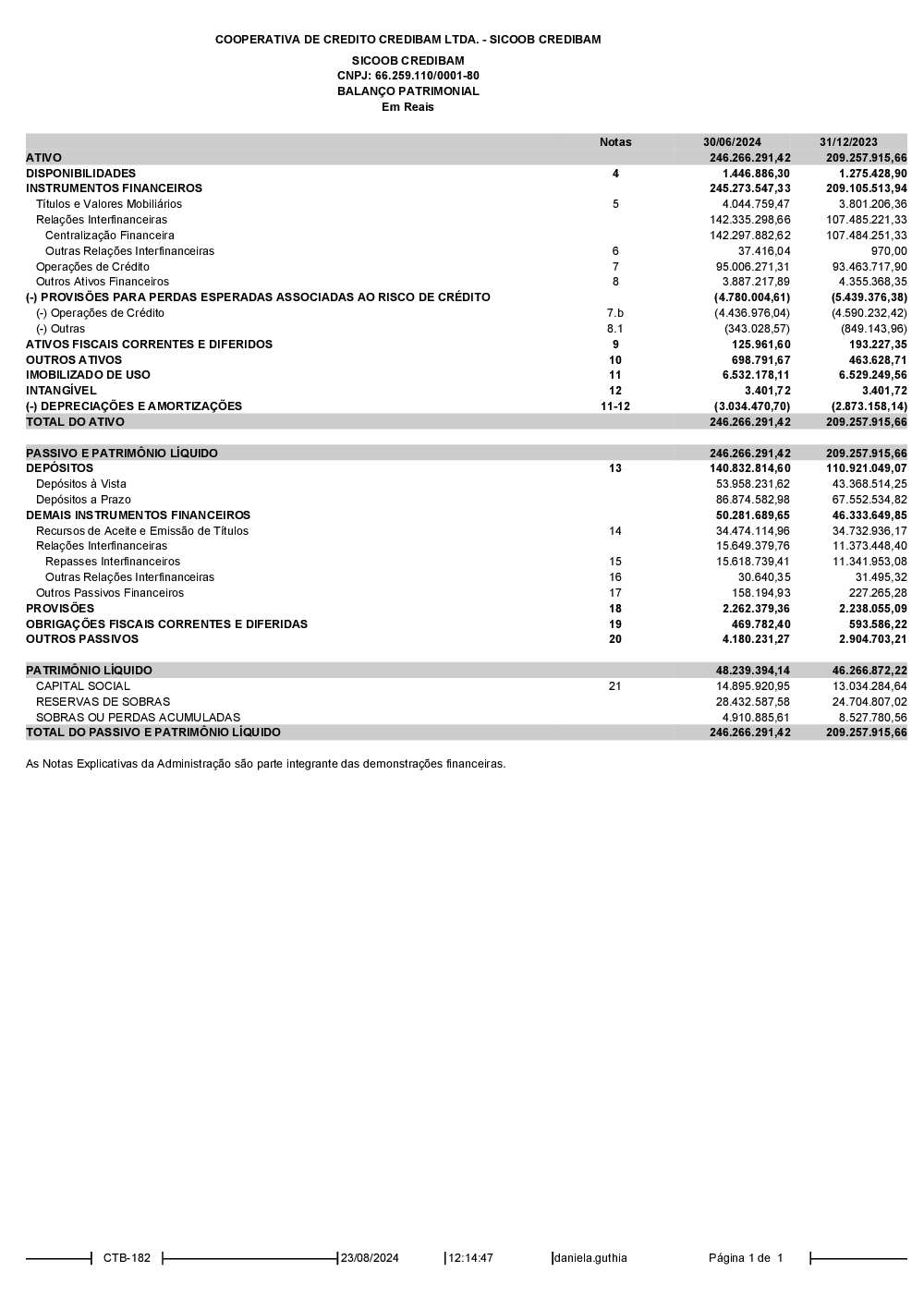 Demonstrações Contábeis - Sicoob Credibam