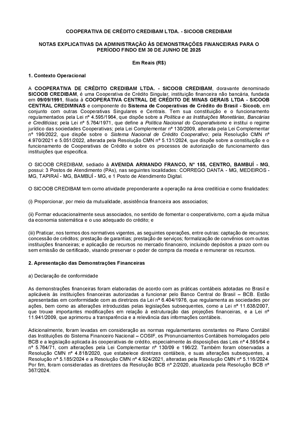 Demonstrações Contábeis - Sicoob Credibam