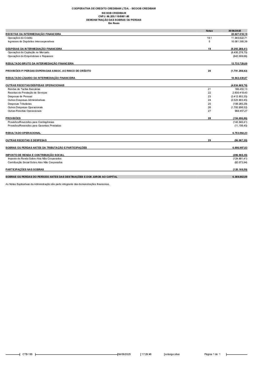 Demonstrações Contábeis - Sicoob Credibam