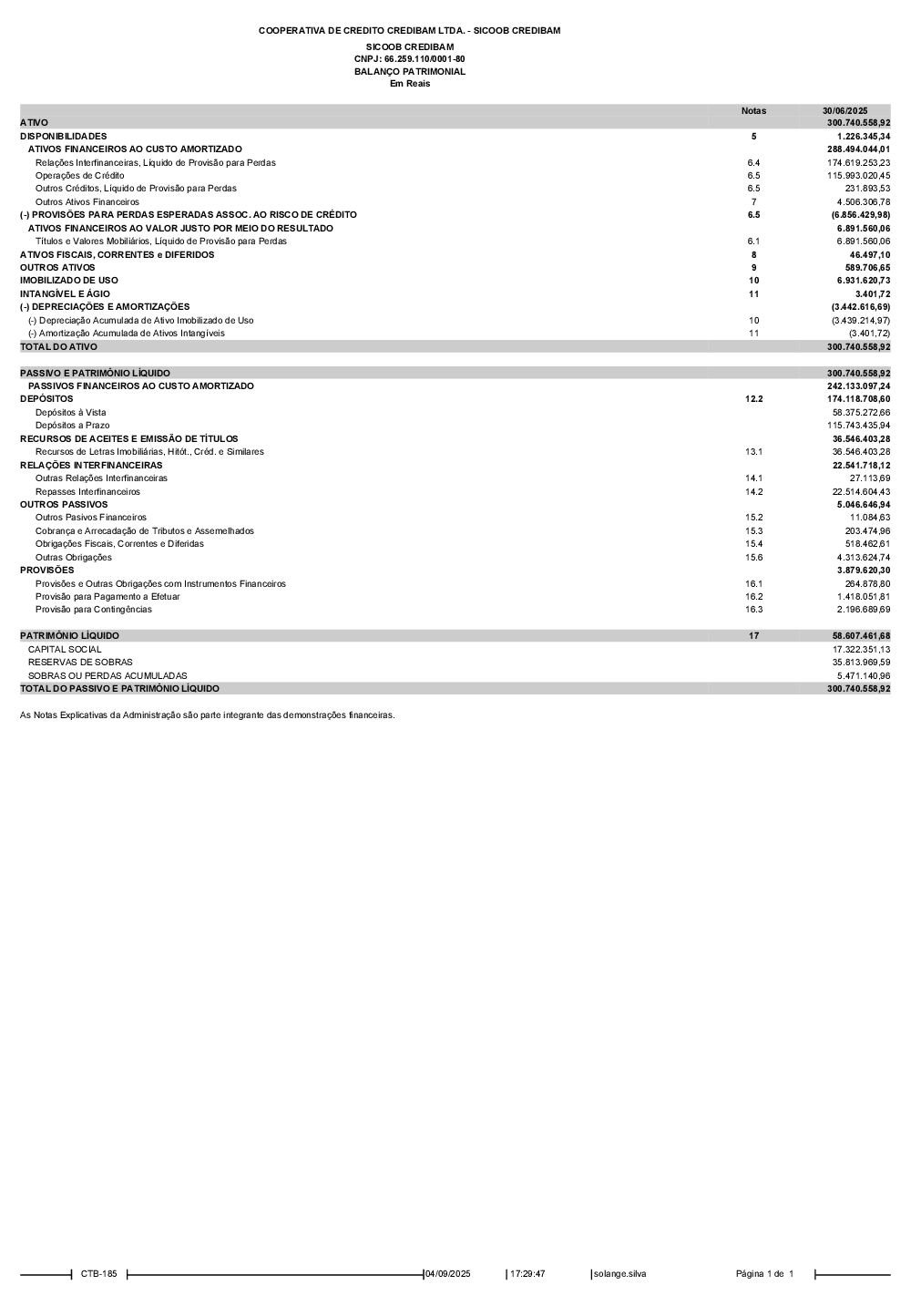 Demonstrações Contábeis - Sicoob Credibam