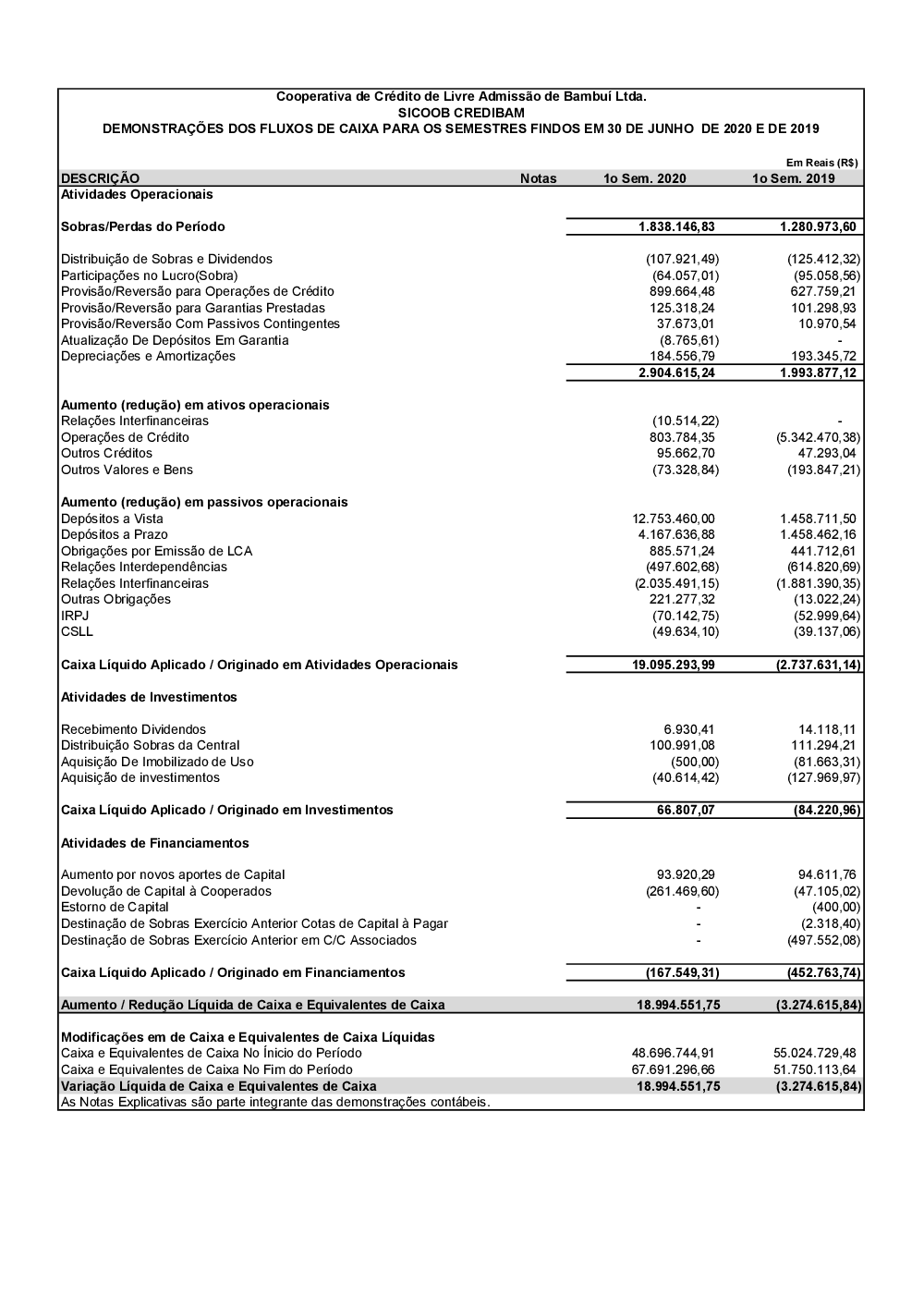 Demonstrações Contábeis - Sicoob Credibam