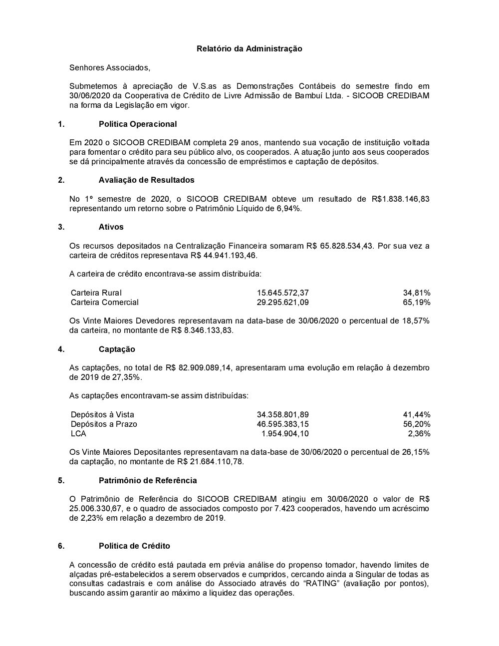 Demonstrações Contábeis - Sicoob Credibam