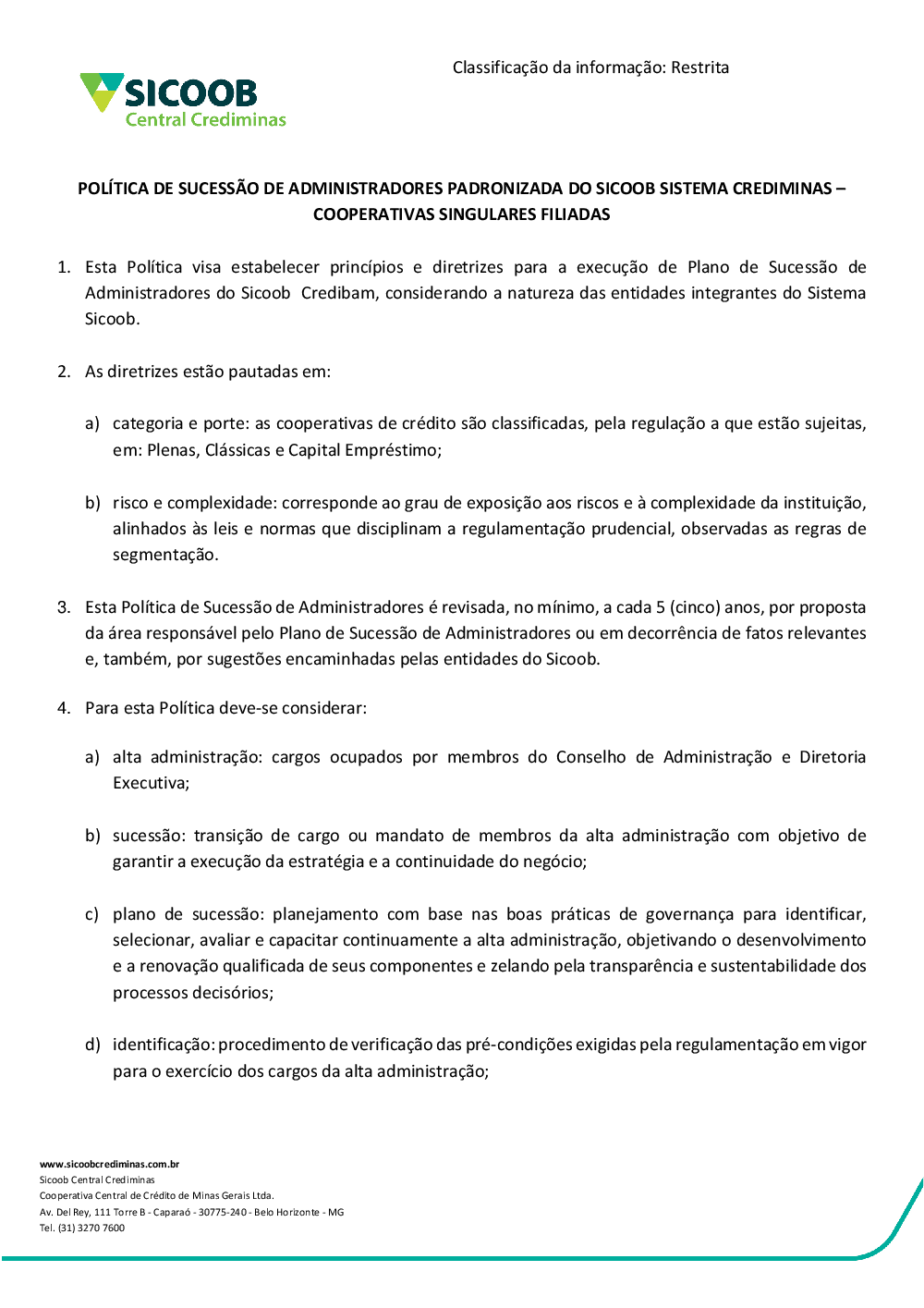 Política de Sucessão de Administradores - Sicoob Credibam