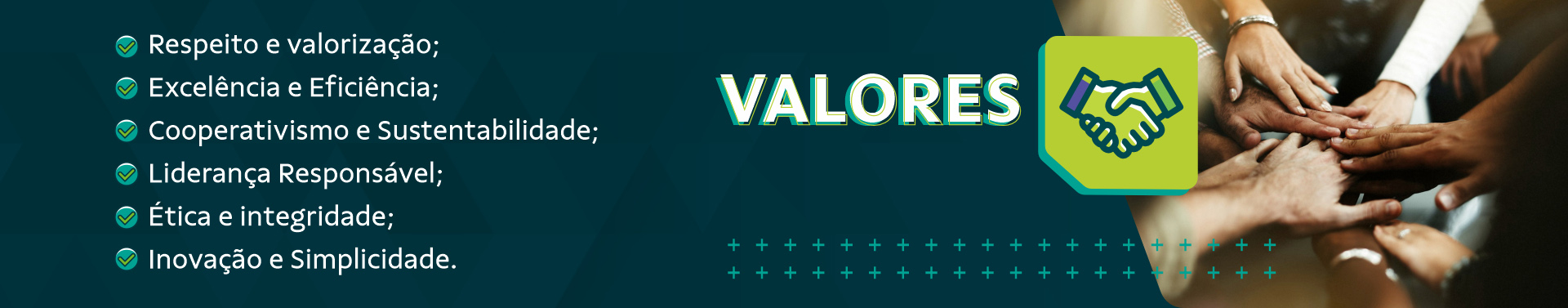 Valor é algo que se acredita como sendo certo, justo ou bom e que guia o comportamento. O Sicoob Credibam tem claro seus valores e estes são os princípios que regem as ações e comportamentos de todos que fazem parte.