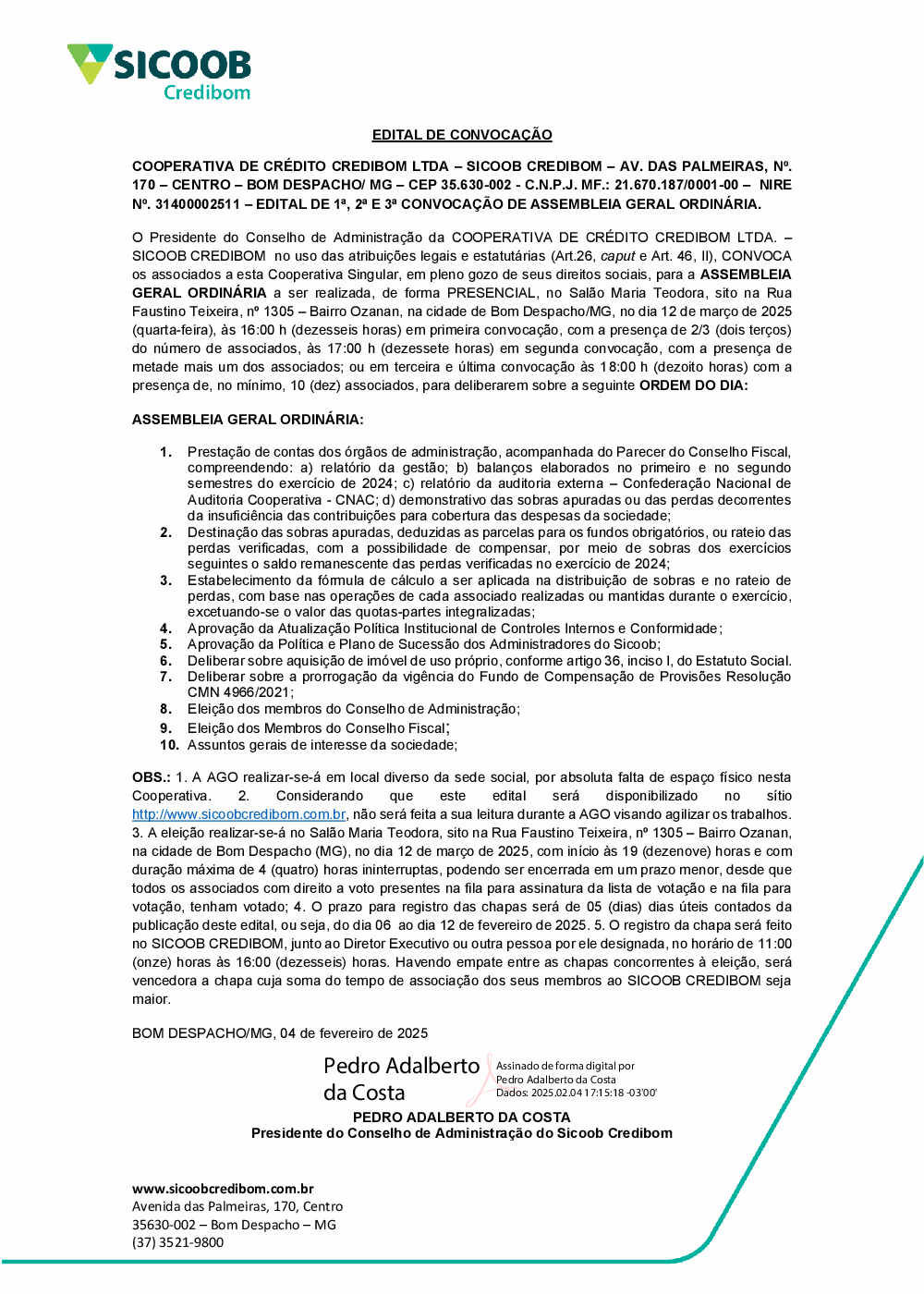 Edital de Convocação - AGO 2025 - 12/03/2025