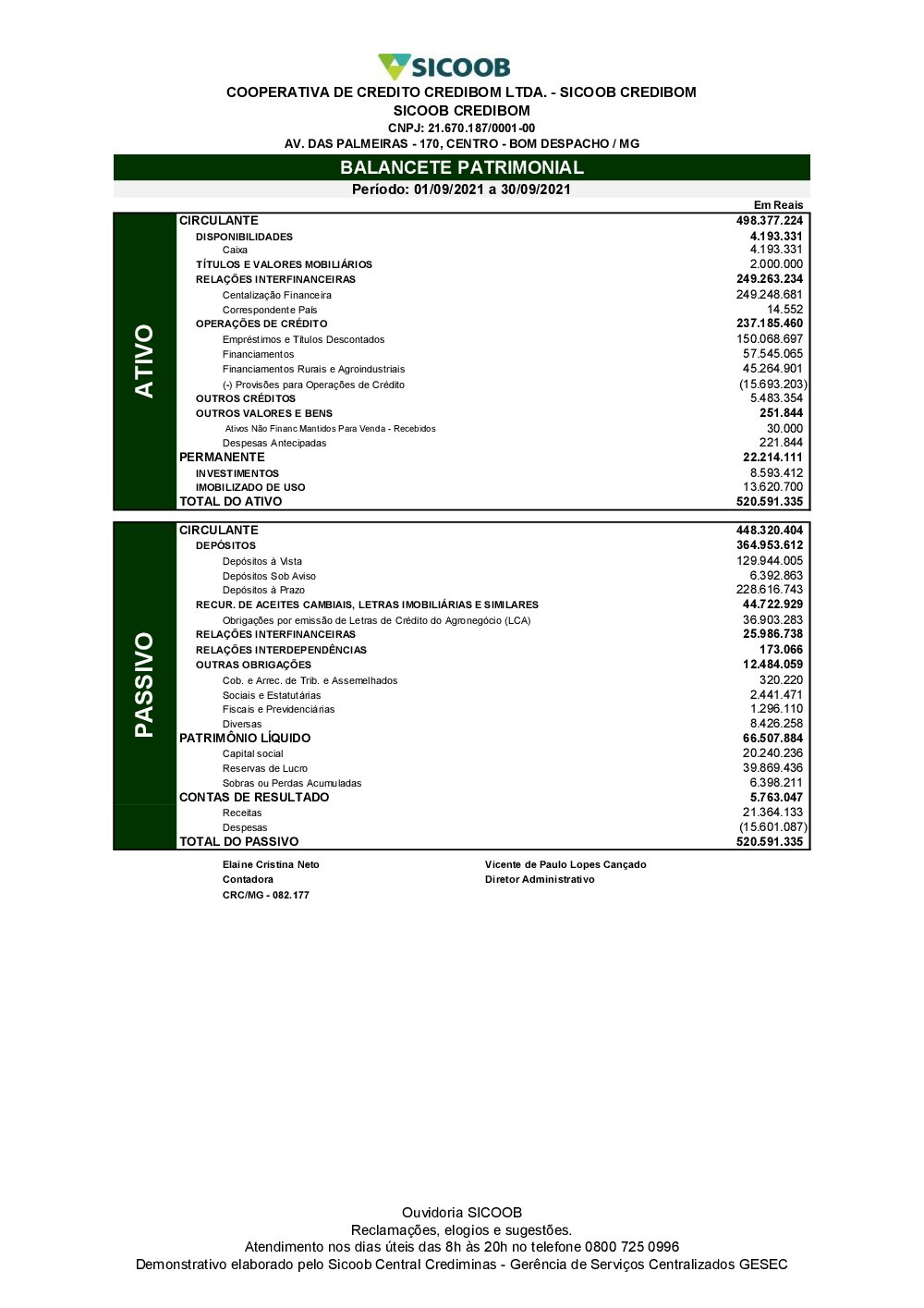 09/2021 - Balancete Patrimonial