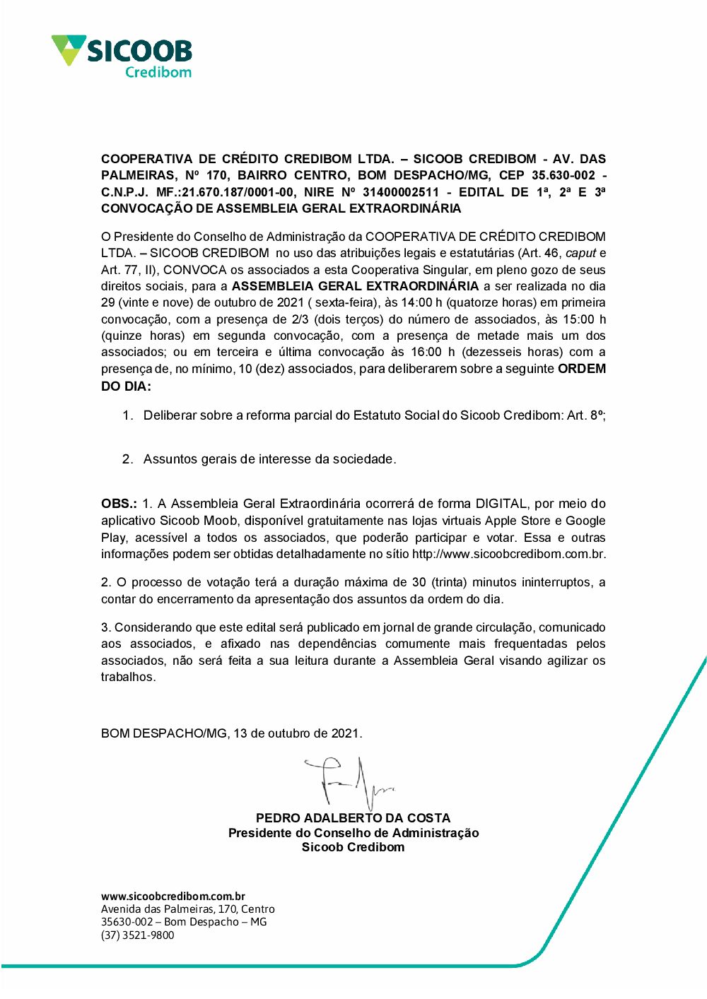 Edital de Convocação - Assembleia Geral Extraordinária 2021