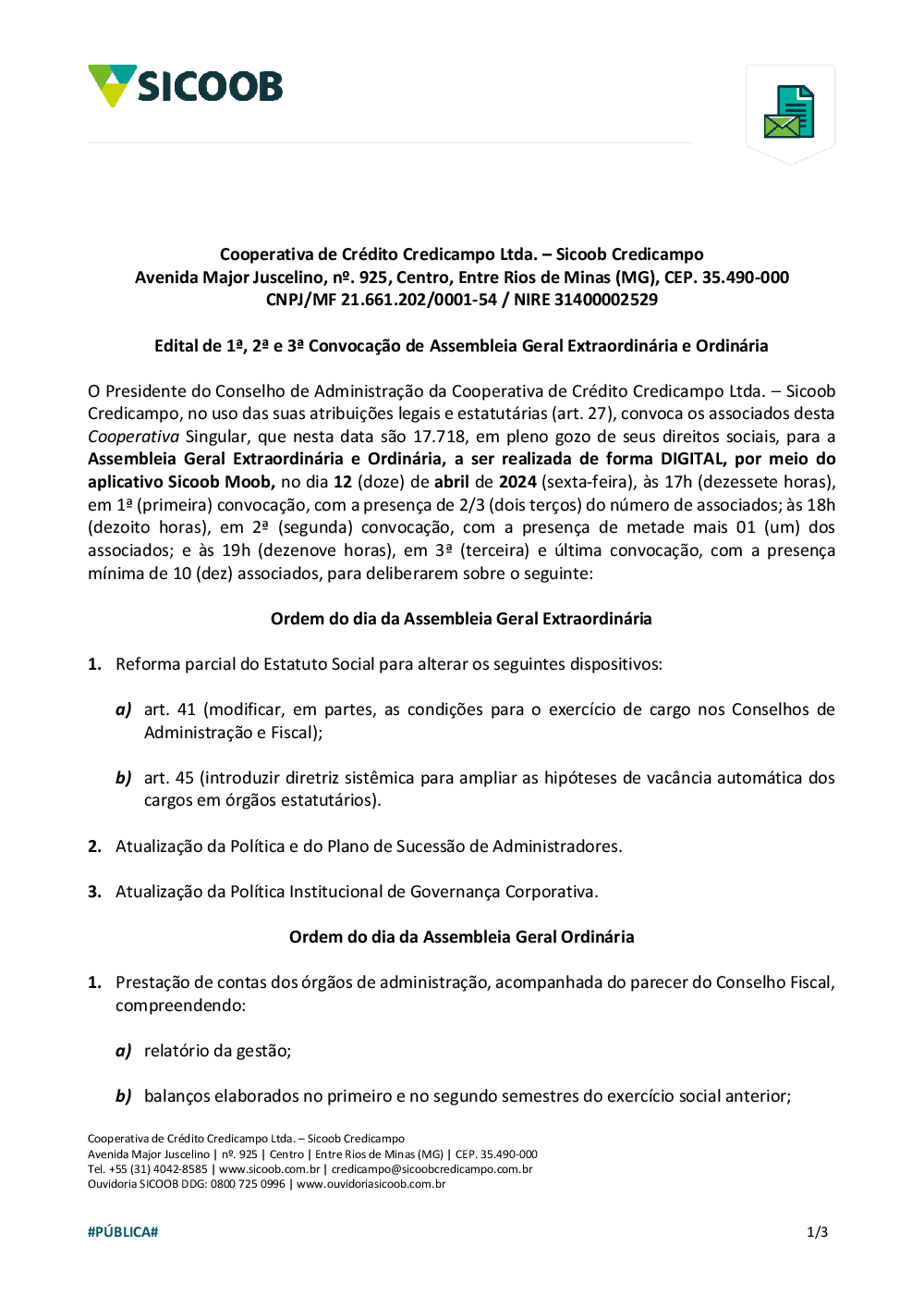 Confira abaixo toda a documentação referente à Assembleia Geral Extraordinária 2025: