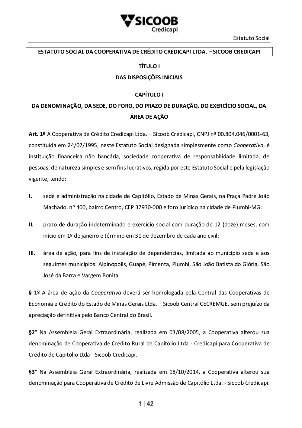 Estatuto Social - Sicoob Credicapi