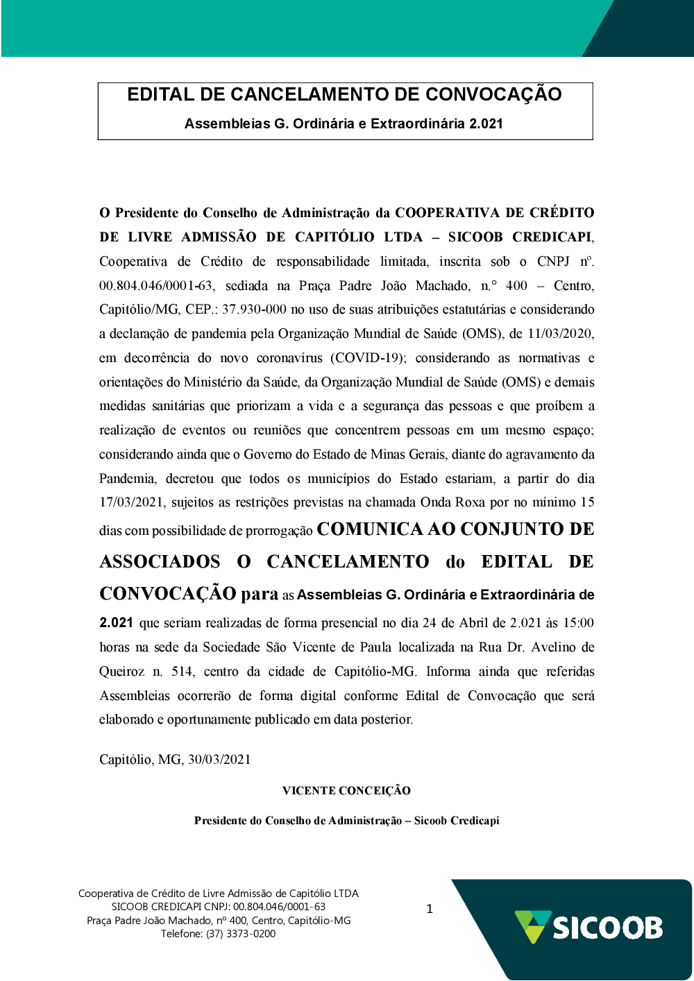 - EDITAL DE CANCELAMENTO DE CONVOCAÇÃO DE AGO E AGE 2021