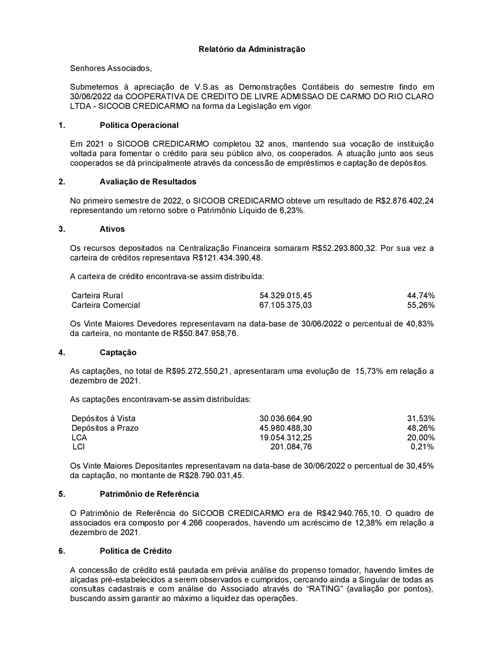 Relatórios - Sicoob Credicarmo