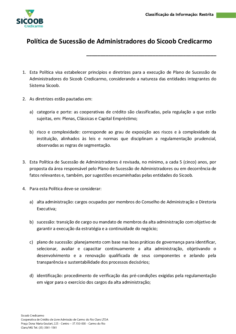 Sicoob Central CrediminasCooperativa Central de Crédito de Minas Gerais Ltda.Av. Del Rey, 111 Torre B - Caparaó - 30775-240 - Belo Horizonte - MGTel. (31) 3270 7600