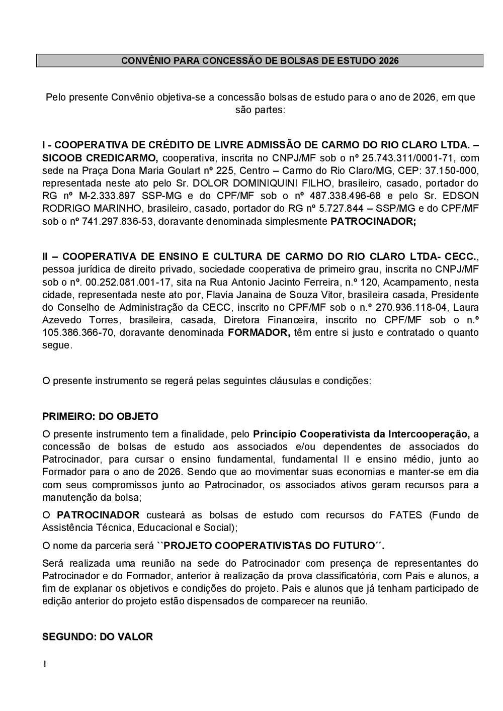 - 2026 - CONVÊNIO COOPERATIVISTAS DO FUTURO