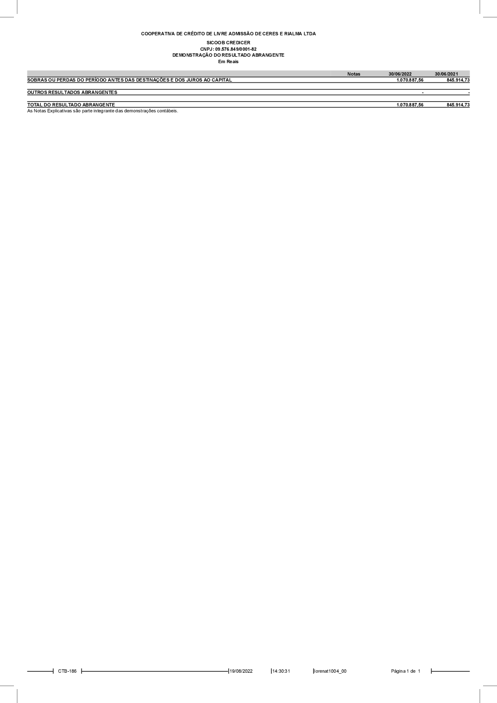 SICOOB CREDICER - DEMONSTRAÇÃO DO RESULTADO ABRANGENTE