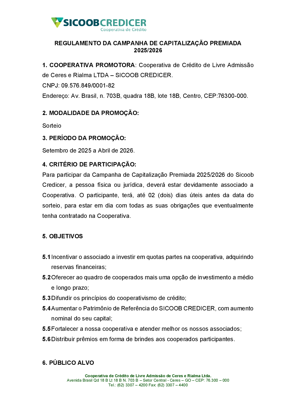Regulamento da Camp. de Capitalização Premiada - 2025-2026