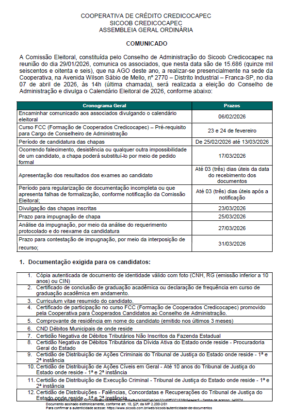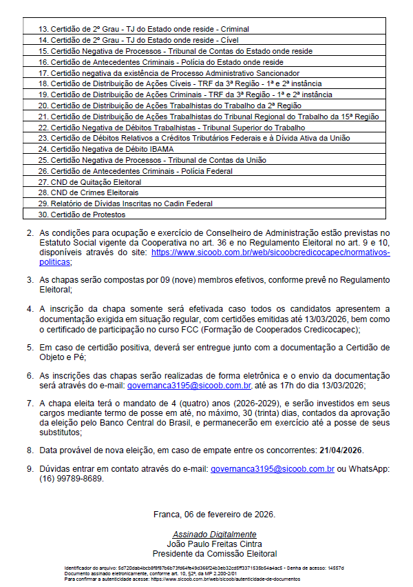 • Calendário Eleitoral - 06 de fevereiro de 2026