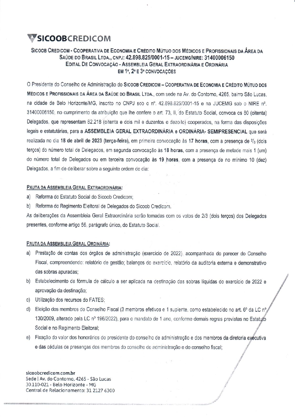 Comunicamos que o Sicoob Credicom realizará no dia 18/04/2023 Assembleia Geral Extraordinária e Ordinária. Confira os documentos nos cards abaixo.