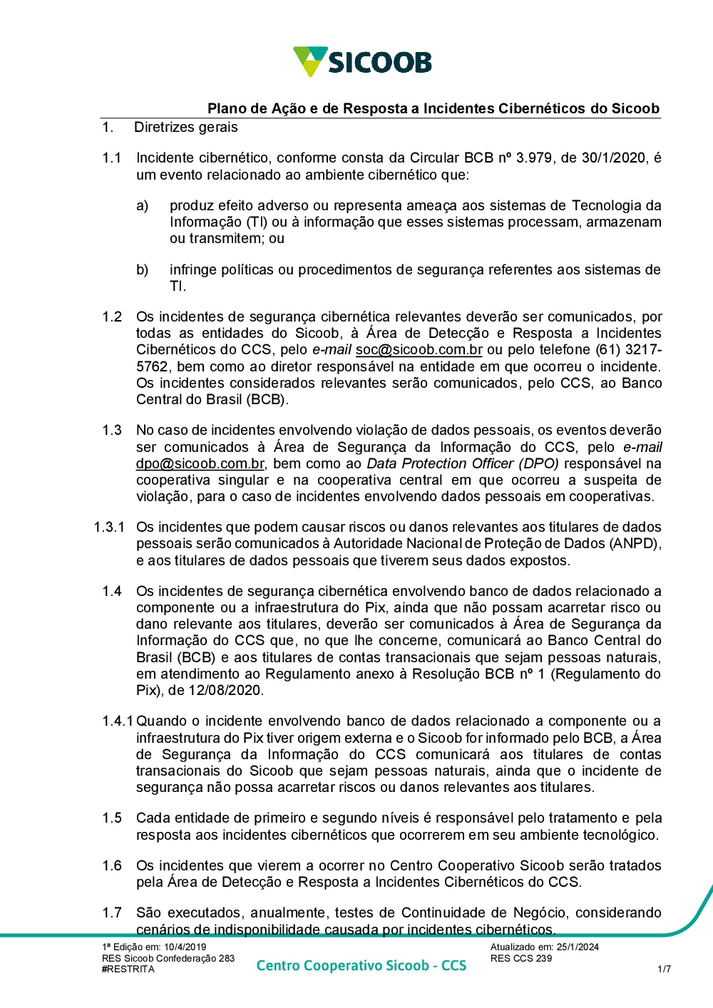 Plano de Ação de e de Resposta a Incidetnes Cibernéeticos do Sicoob