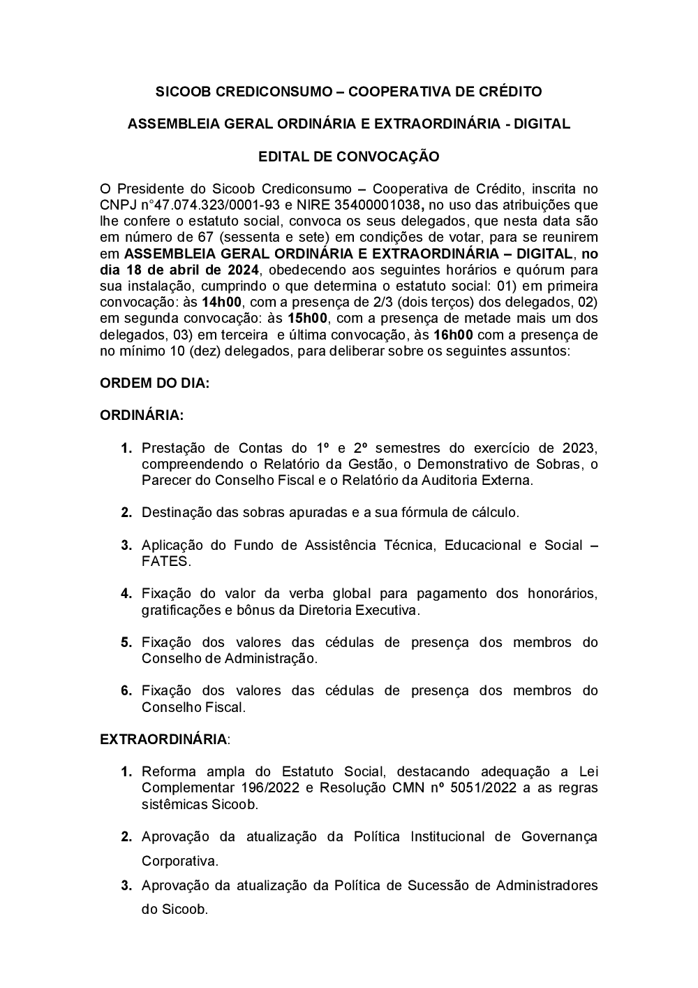 COOPERATIVA DE ECONOMIA E CRÉDITO MÚTUO DOS EMPREGADOS DA COOP – COOPERATIVA DE CONSUMO