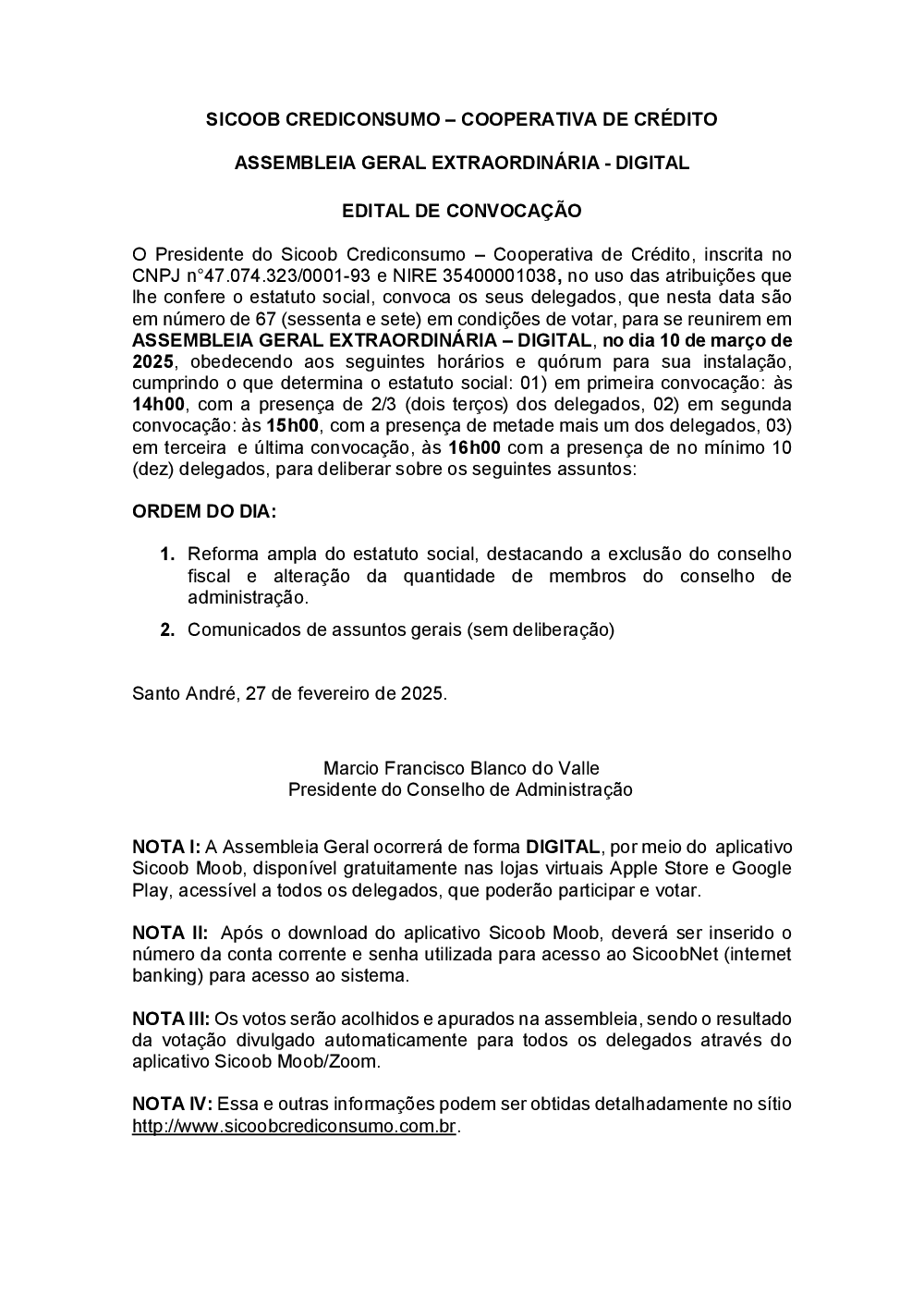 COOPERATIVA DE ECONOMIA E CRÉDITO MÚTUO DOS EMPREGADOS DA COOP – COOPERATIVA DE CONSUMO