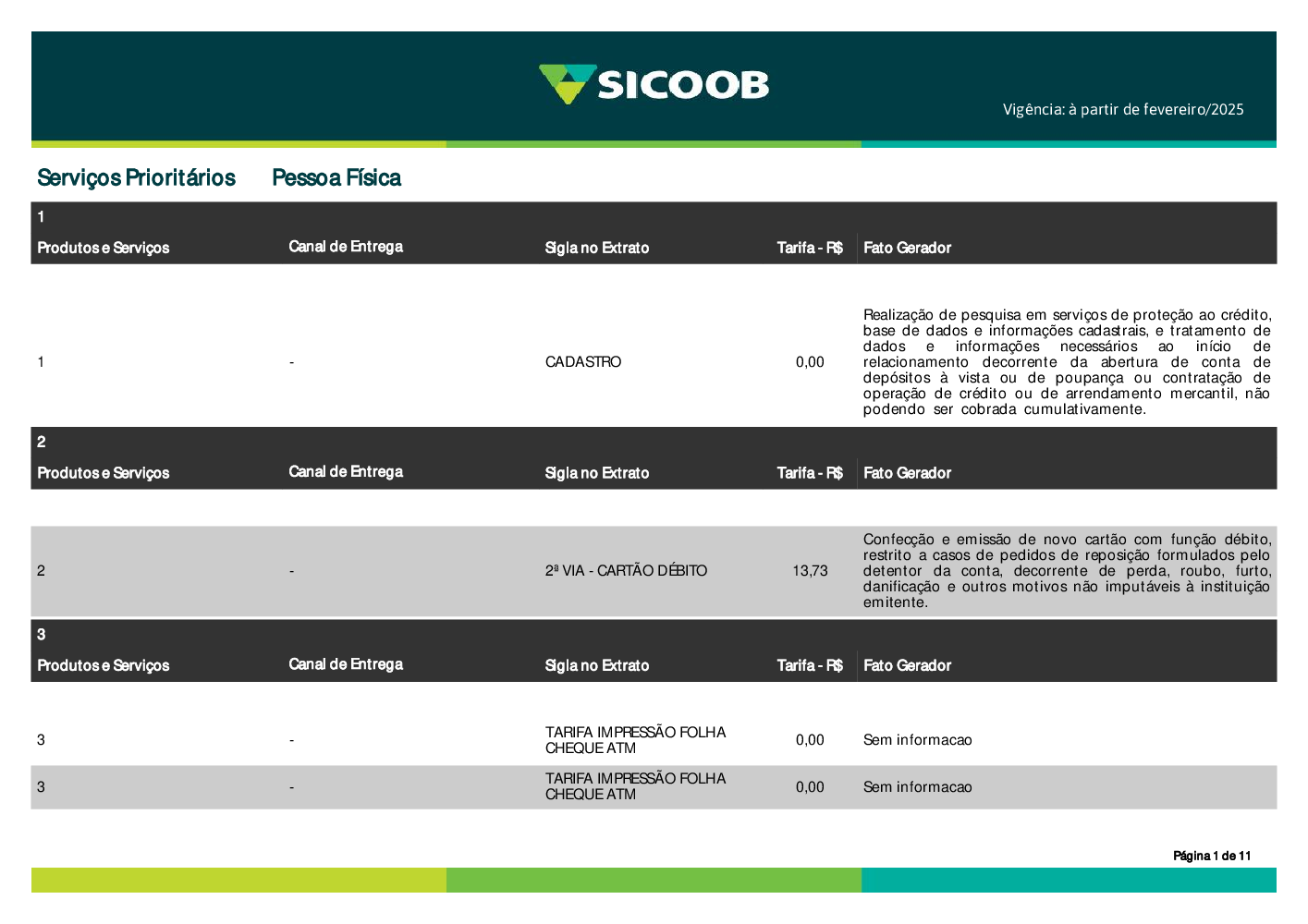 Tabela de tarifas - Sicoob Crediconsumo