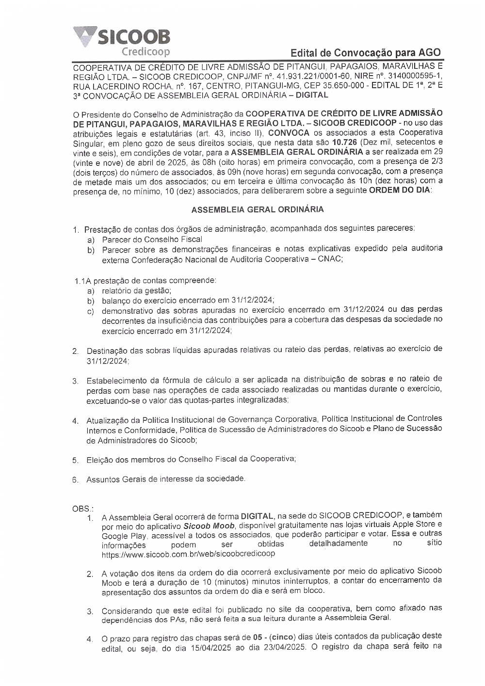 Edital de Convocação AGO 2025 - Sicoob Credicoop