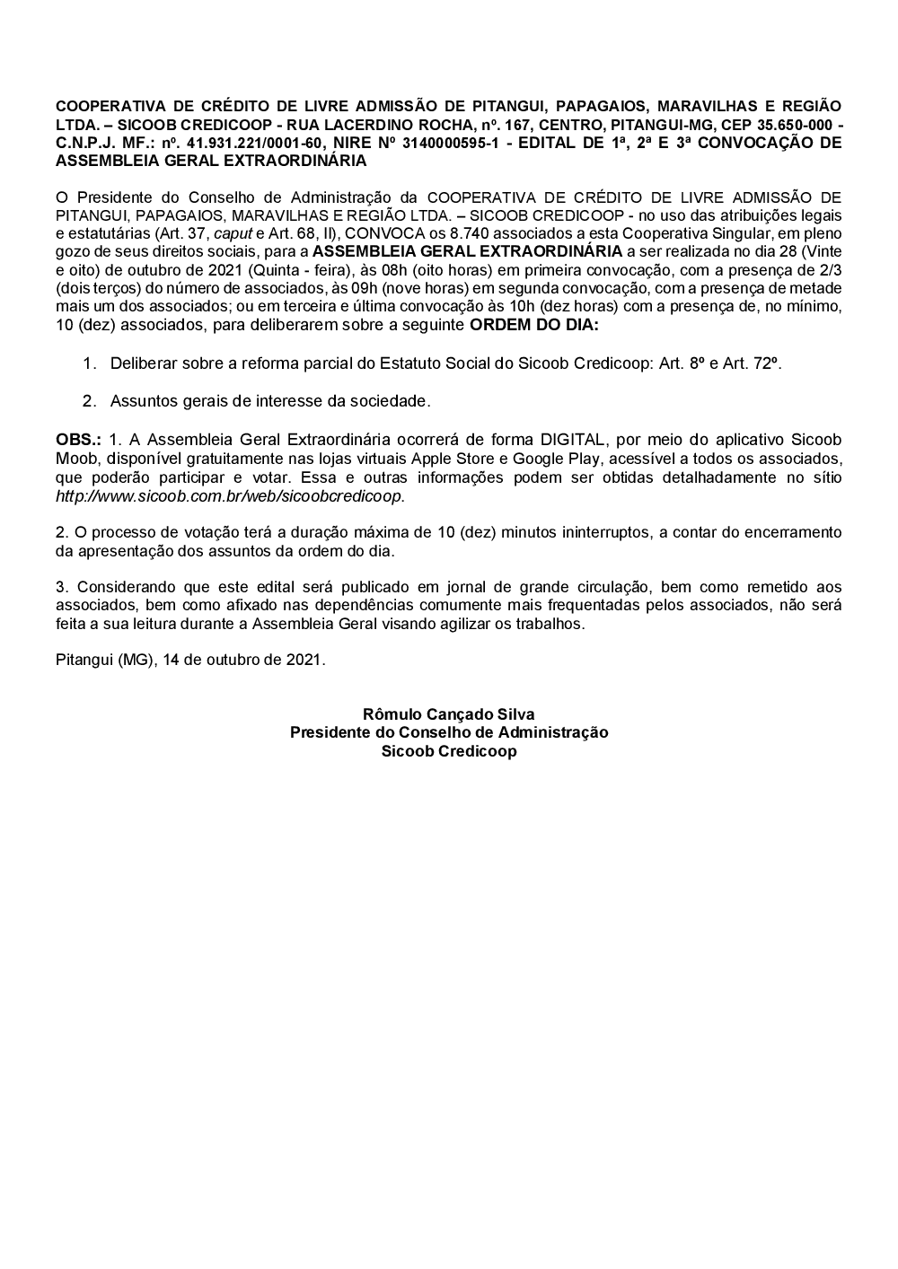 - 14/10/21 09:36 por ELCIO EUSTAQUIO DE OLIVEIRA MENDONÇA JUN