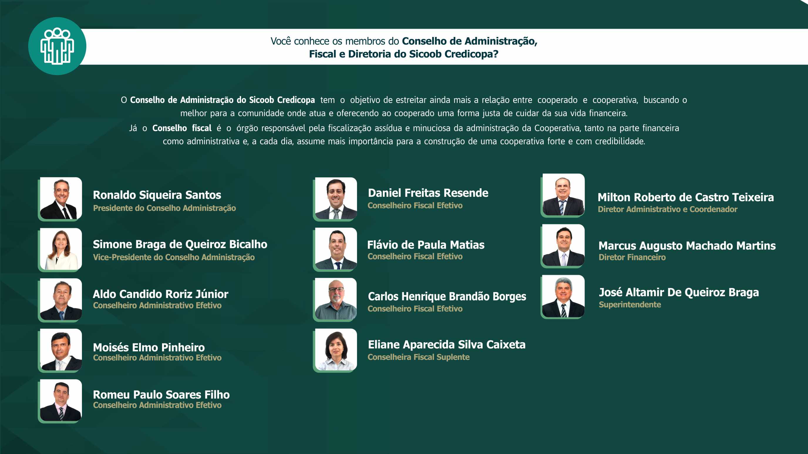 Conselho de Administração, Fiscal e diretoria - Sicoob Credicopa