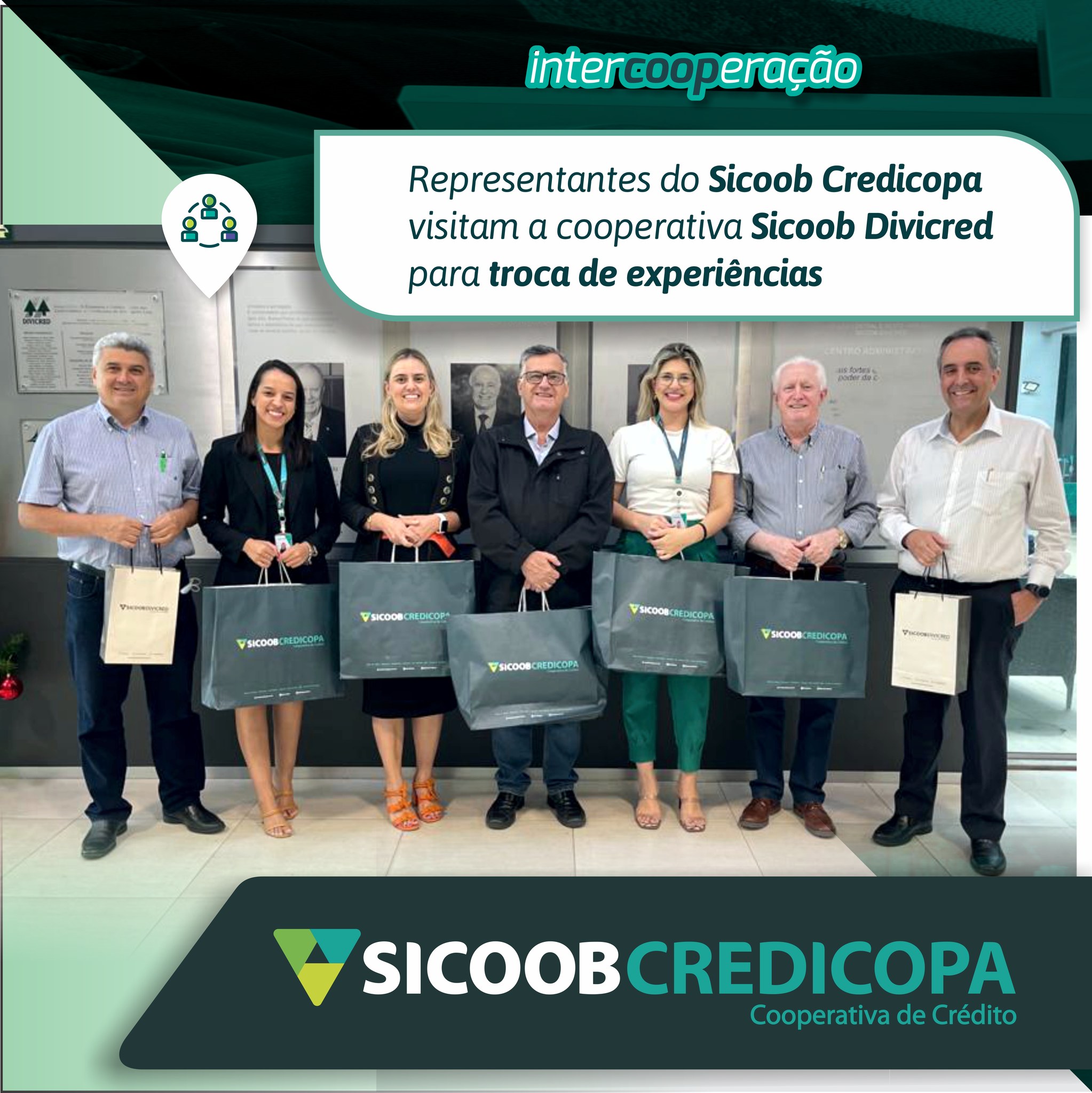 O presidente do Sicoob Credicopa, Ronaldo Siqueira Santos e o superintendente, José Altamir de Queiroz Braga, visitaram o Sicoob Divicred, em busca de novos conhecimentos. Na oportunidade estiveram reunidos com a Izabel Luisa - Gerente da Central de Relacionamento, Fernanda Faleiro - Gerente de Marketing e Inovação, Sérvio Túlio - Diretor coordenador Financeiro, Layce Gabriella - Gerente da Unidade Comercial e Urias Geraldo de Sousa - Presidente do Conselho de Administração. A visita foi um momento oportuno para a troca de experiências e fortalecer a Intercooperação.