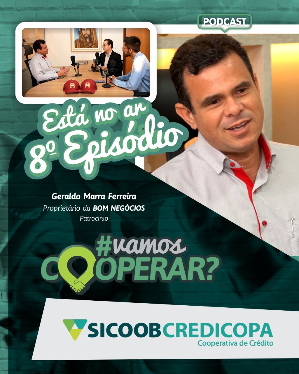 No ar o podcast Vamos Cooperar? que conta a história do nosso cooperado de Patrocínio. Geraldo Marra Ferreira diretor e proprietário do Grupo Bom Negócio fala de empreendedorismo, cooperativismo e muito mais. Não perca! Assista o nosso episódio completo pelo link https://youtu.be/NxkvQEOxg_s?si=Ccf9ESv2Po49gcid!