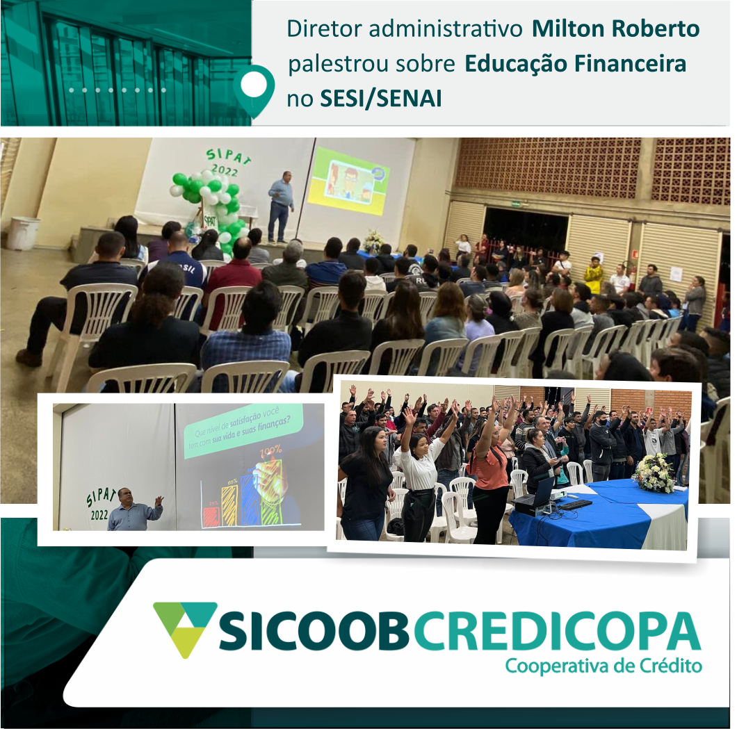O diretor administrativo do Sicoob Credicopa, Milton Roberto de Castro Teixeira, palestrou sobre Educação Financeira na abertura da SIPAT – Semana Interna de Prevenção de Acidentes de Trabalho, na unidade SESI/SENAI, em Patos de Minas, no dia 04/07. A SIPAT é uma iniciativa dos alunos do Curso Técnico em Segurança do Trabalho do SENAI, sob a coordenação e orientação da instrutora Dayane Regina Ribeiro Lacerda. Milton Roberto transmitiu aos alunos orientações sobre como se consegue gerir os recursos financeiros, na prática, possibilitando a realização de projetos. “Educação Financeira é a habilidade individual para se tomar decisões apropriadas na gestão das finanças. Como era um público jovem, o enfoque foi na importância de se definir metas e estabelecer os projetos de vida, com abordagem sobre pontos em que pode economizar, mostrando que é possível alcançar a realização dos sonhos individuais e aqueles compartilhados com a família”, enfatizou.