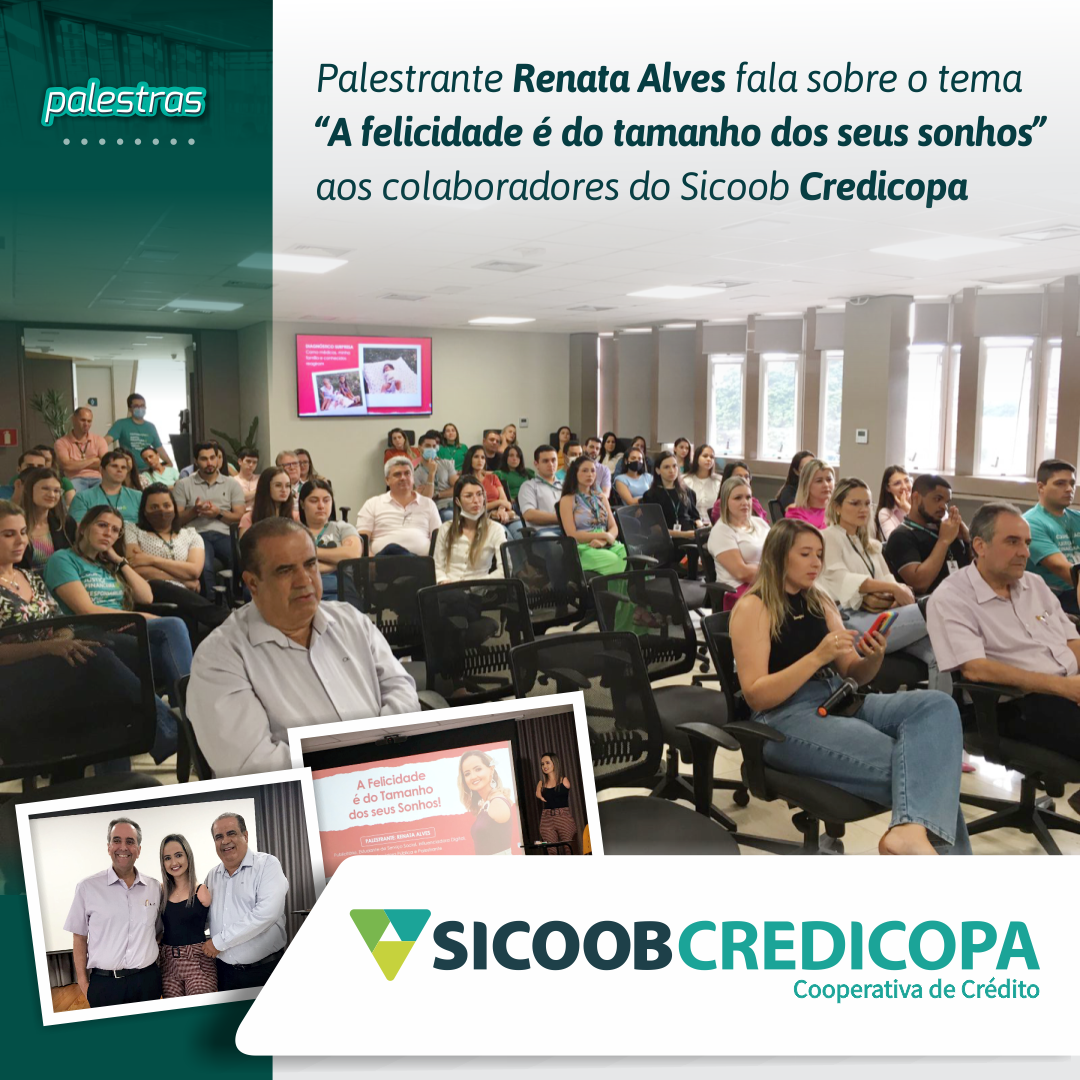 Palestrante Renata Alves fala sobre o tema "A Felicidade é do tamanho dos seus sonhos!" aos colaboradores do Sicoob Credicopa