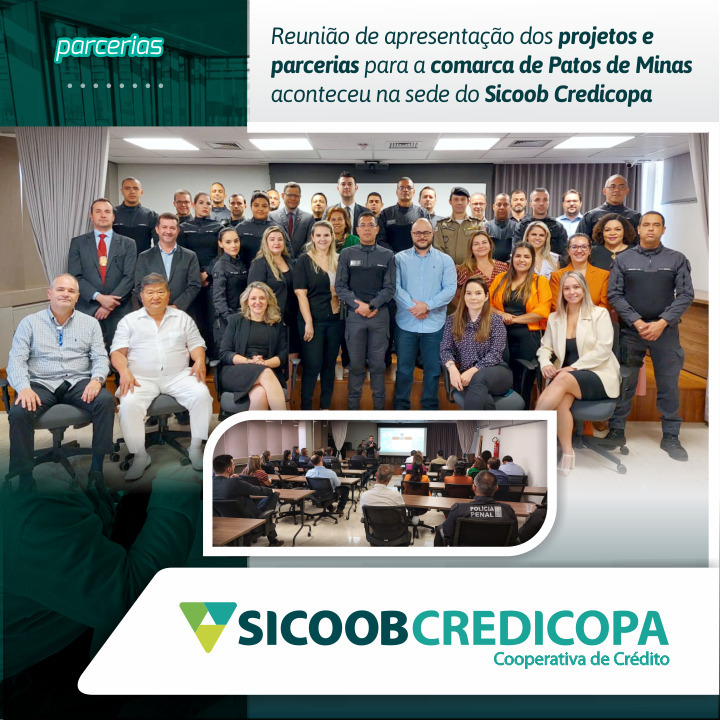 Na tarde de terça-feira (31/08), em continuidade às ações e projetos vinculados ao Sistema Prisional, o Diretor Geral do Departamento Penitenciário de Minas Gerais - Depen, Rodrigo Machado apresentou projetos e implementação de parceria para fortalecer os planos de ação em andamento na comarca de Patos de Minas. Na oportunidade, a juíza da 2ª Vara Criminal e Execuções Penais, Dra. Solange de Borba Reimberg reiterou a importância da união e as parcerias firmadas. A reunião aconteceu no auditório da sede do Sicoob Credicopa e reuniu integrantes da Rede Patos, Comitê de Políticas Penais, Conselho da Comunidade, OAB, Conselho da Segurança Pública, Polícia Civil, Polícia Militar, Diretoria Regional da 10ª Risp, Poder Executivo de Patos de Minas, Varjão de Minas, São Gonçalo do Abaeté, Lagoa Formosa e Carmo do Paranaíba, Poder Legislativo de Patos de Minas e Carmo do Paranaíba, Defensoria Pública, Ministério Público, Poder Judiciário, Direção das unidades prisionais de Patos e Presidente Olegário, bem como presidente da Apac e do Conselho da Comunidade de Uberlândia.