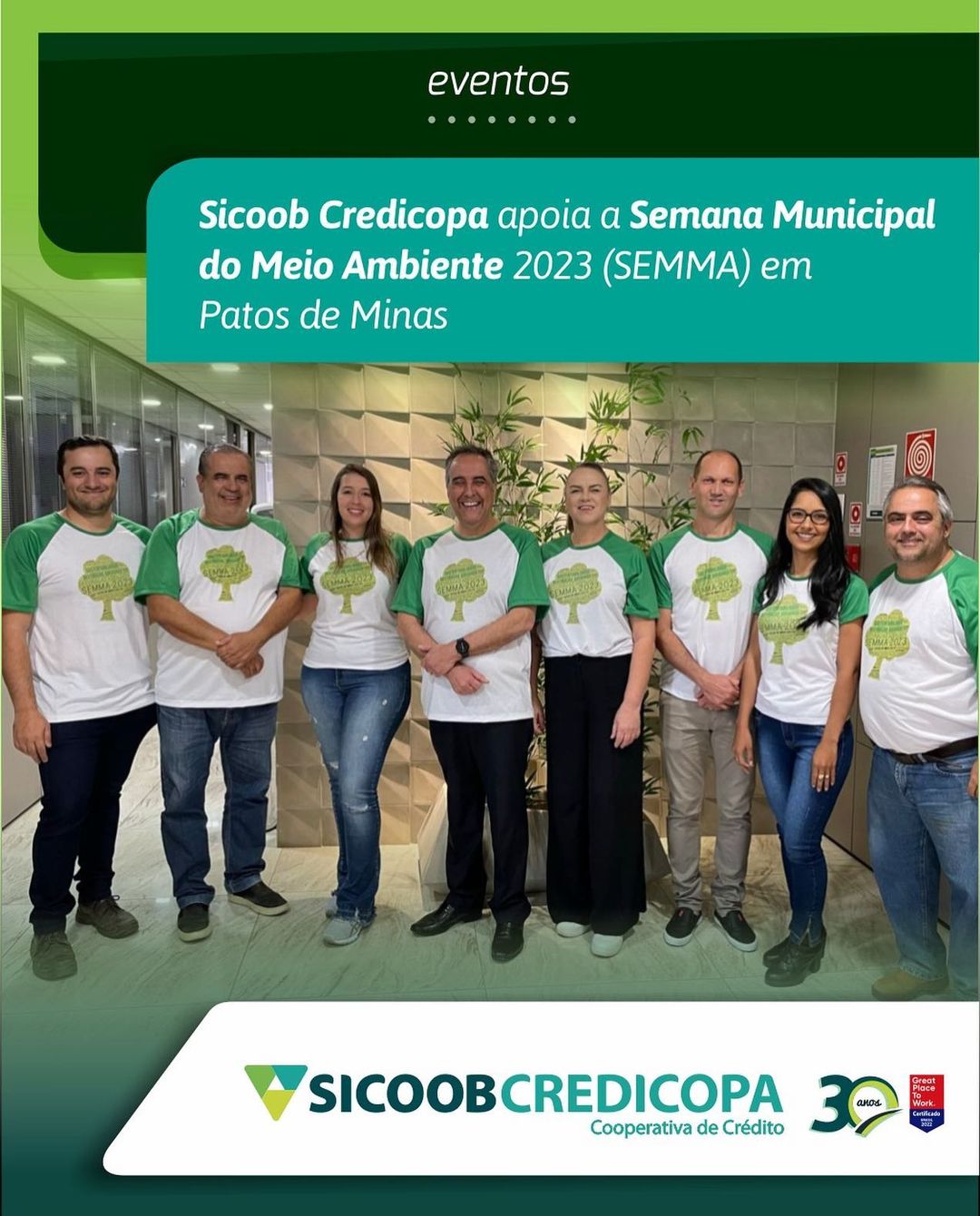 O Comitê de Sustentabilidade do Sicoob Credicopa, está comprometido em promover ações que contribuam para um futuro mais sustentável e responsável. Acreditamos que a cooperação e a conscientização são essenciais para preservar o meio ambiente e criar um impacto positivo na sociedade. De acordo com o presidente do Sicoob Credicopa, Ronaldo Siqueira Santos, por meio do nosso Comitê de Sustentabilidade, trabalhamos em conjunto para identificar oportunidades de melhoria e implementar práticas sustentáveis em todas as áreas da nossa cooperativa. Desde a redução do consumo de recursos naturais até a promoção da educação ambiental, buscamos fazer a diferença. Além disso, apoiamos projetos e iniciativas que estejam alinhados com a preservação do meio ambiente e a promoção da sustentabilidade em nosso município. Nesta Semana Municipal do Meio Ambiente (03 a 07 de junho), estamos orgulhosos em apoiar e participar da Semana Municipal do Meio Ambiente (SEMMA), organizada pela prefeitura de Patos de Minas. Como cooperativa de crédito comprometida com o desenvolvimento da comunidade, entendemos a importância de cuidar do meio ambiente para garantir um futuro próspero para todos. Hoje (05/06), o Sicoob Credicopa participará do Momento Cívico na Prefeitura de Patos de Minas onde haverá Hasteamento das Bandeiras do Brasil, de Minas Gerais e de Patos de Minas e Plantio simbólico do ipê amarelo. Juntos, podemos fazer a diferença. Vamos nos unir em prol do meio ambiente, adotando práticas sustentáveis em nossas vidas, compartilhando conhecimentos e trabalhando em parceria para criar um futuro mais verde e saudável.