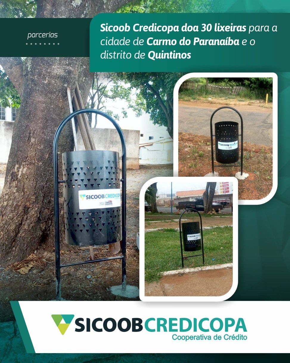 O Sicoob Credicopa reafirmou seu compromisso com as comunidades locais e a sustentabilidade ao doar um total de 30 lixeiras para a prefeitura de Carmo do Paranaíba e distrito de Quintinos. Essas lixeiras foram estrategicamente posicionadas em áreas urbanas, como praças e pontos de grande circulação, contribuindo para a manutenção da limpeza e para a criação de um ambiente mais agradável para os residentes. A parceria entre o Sicoob Credicopa e a prefeitura de Carmo do Paranaíba destaca o impacto positivo do cooperativismo e demonstra o compromisso social da instituição em promover a qualidade de vida e o bem-estar da comunidade.