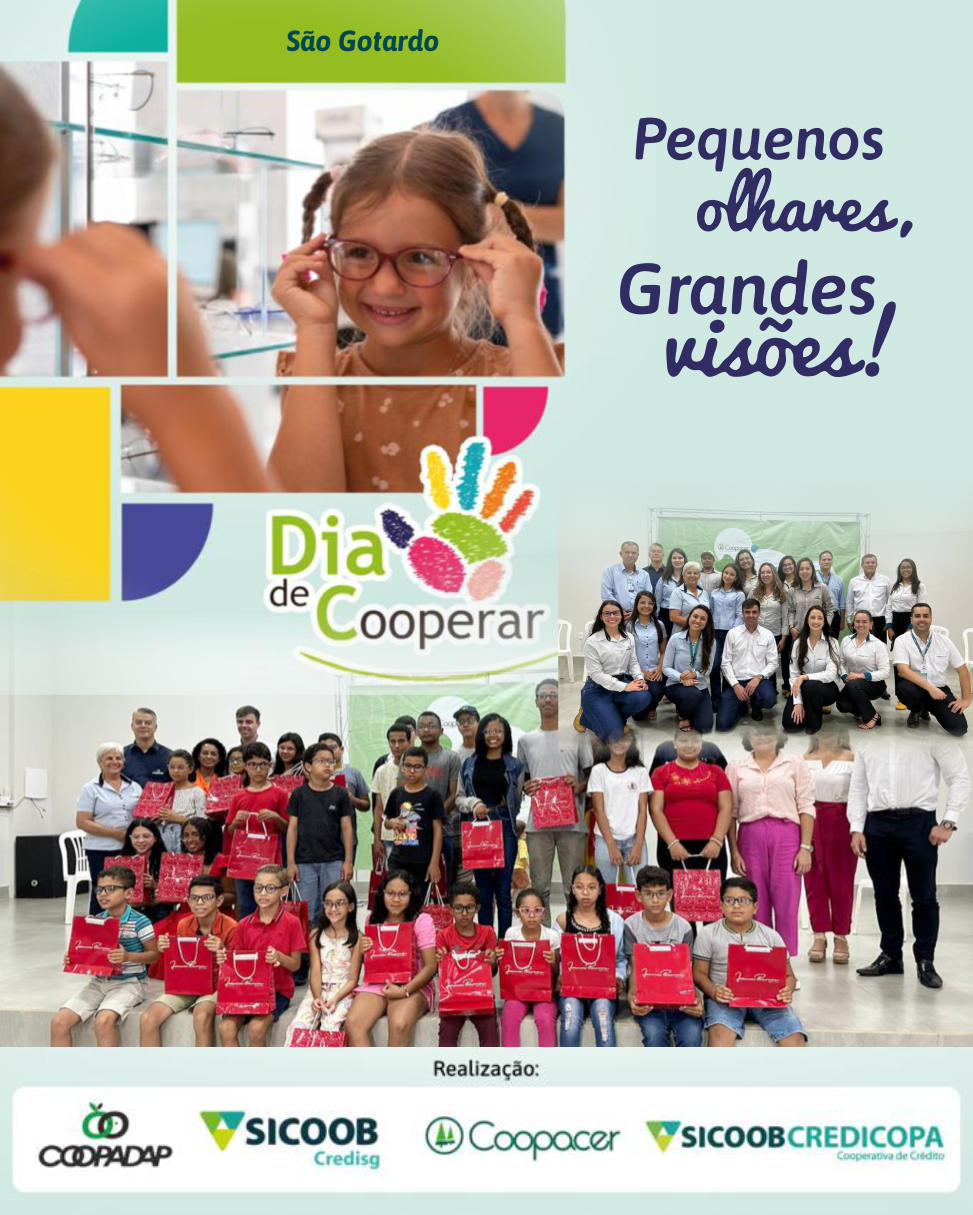 Projeto “Pequeno olhares, grande visões” 👓 O Dia de Cooperar – Dia C de 2023, conduzido pelas cooperativas Sicoob Credicopa, Sicoob Credisg, Coopacer, Coopadap foi verdadeiramente singular. Participar da ação do Dia C, principalmente essa que cuida da saúde ocular de 70 crianças e adolescentes, agraciadas com o apoio financeiro das cooperativas para consultas oftalmológicas e aquisição de armações com lentes de grau, significa muito para nós do Sicoob Credicopa. É mais do que garantir uma boa visão, pois esses cuidados refletem diretamente na autoestima, já que a criança passa a enxergar melhor, ganha autoconfiança e melhora o aproveitamento educacional nesse momento tão importante de desenvolvimento na infância. De acordo com o Conselho e a Sociedade Brasileira de Oftalmologia, 8 em cada 10 alunos na idade pré-escolar nunca fizeram exames de vista e cerca de 30% apresentam alterações visuais que comprometem o desempenho escolar. Além disso, o Ministério da Educação afirma que problemas de visão são responsáveis por mais de 20% do abandono escolar no Brasil. Ou seja, crianças com dificuldade de enxergar ficam desmotivadas e acabam abandonando a escola. Ações como essa estão em consonância com o nosso 7º princípio do cooperativismo, que é o Compromisso com a Comunidade. Por fim, reforçamos que onde há uma criança enxergando melhor, haverá um adulto no futuro capaz de promover a transformação social.
