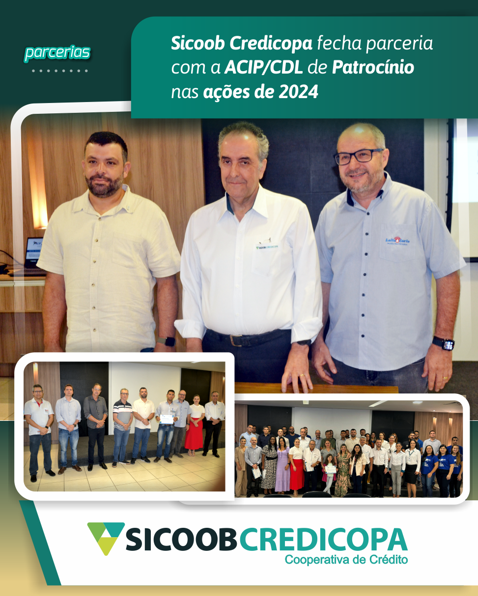 Na manhã de ontem (22/02), foi realizado assinatura de parceria do Sicoob Credicopa e ACIP/CDL em Patrocínio. A assinatura do contrato desta parceria foi realizada com a presença do presidente da ACIP, Wander Júnior de Carvalho, do presidente da CDL, Thiago Batista de Almeida e representando o Sicoob Credicopa, o presidente Ronaldo Siqueira Santos e o diretor administrativo e coordenador Milton Robero de Castro Teixeira. Foi realizada uma sessão de boas-vindas aos novos associados da entidade. O momento foi uma oportunidade para se integrarem aos núcleos empresariais e conhecerem os benefícios e serviços oferecidos para impulsionar o crescimento de seus negócios. Além disso, foram apresentados um panorama das ações executadas em 2023 e as que estão planejadas para 2024 pelas ACIP/CDL, com o apoio do Sicoob Credicopa. O objetivo é fortalecer o ambiente empresarial local e promover o crescimento sustentável dos associados.