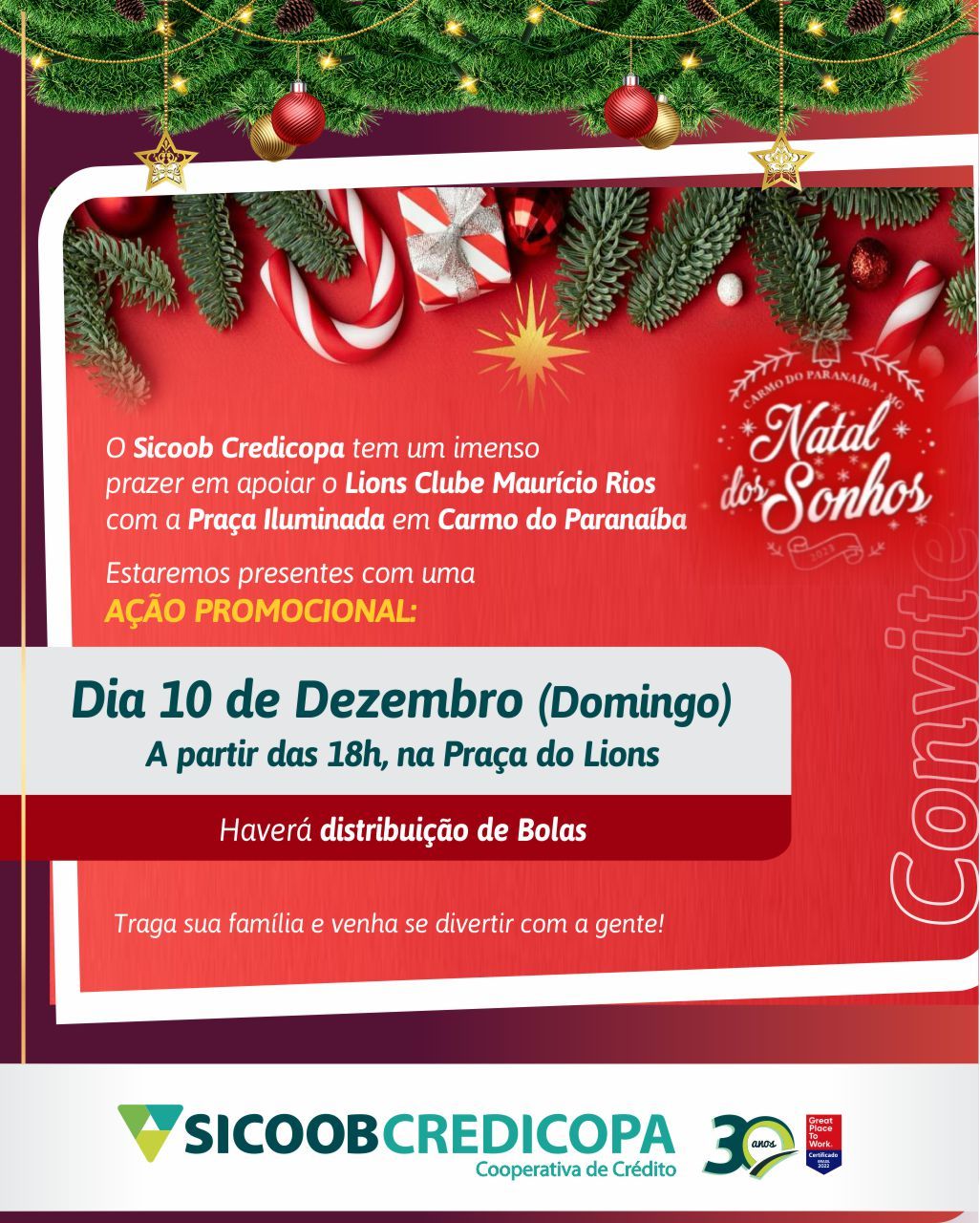 Neste domingo (10/12) o Sicoob Credicopa, a partir das 18h, estará com a equipe de voluntários transformadores, na Praça Iluminada, para distribuir bolas para a criançada. A praça está linda, com uma decoração natalina incrível. O Lions Clube junto aos parceiros como o Sicoob Credicopa cuidaram de tudo com muito carinho para que o clima de Natal chegasse a toda a cidade. Traga a sua família e venha se divertir com a gente!